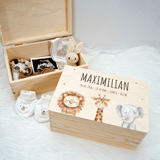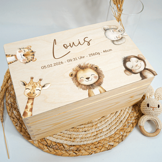 Personalisierte Erinnerungskiste - Süße Safarifreunde