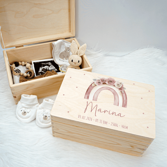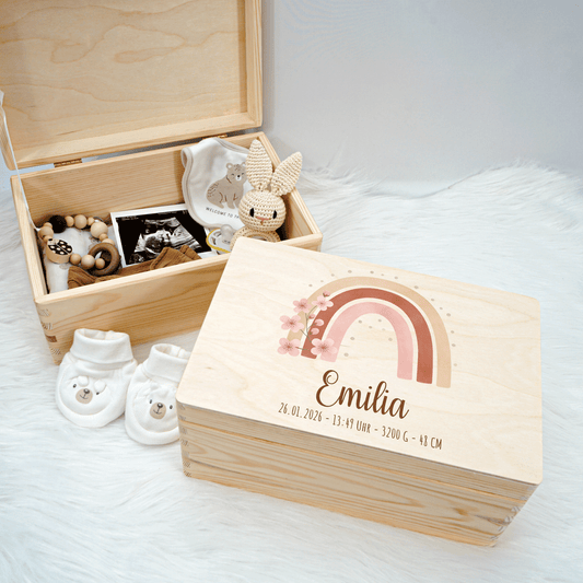Personalisierte Erinnerungskiste - Boho Regenbogen
