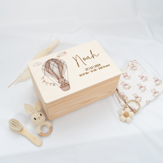 Personalisierte Erinnerungskiste - Niedlicher Teddy & Heißluftballon