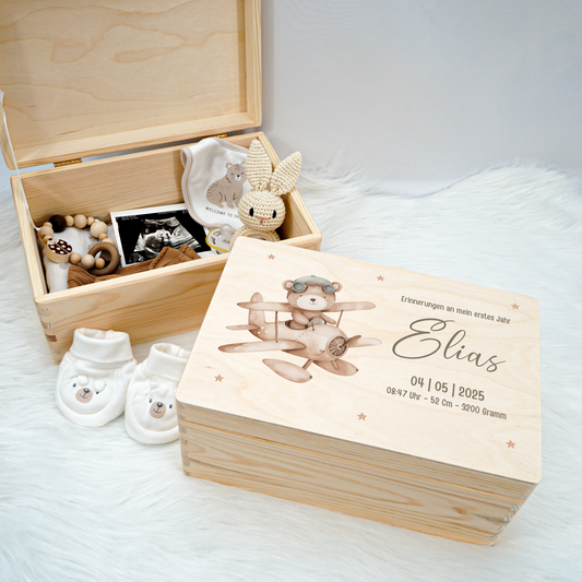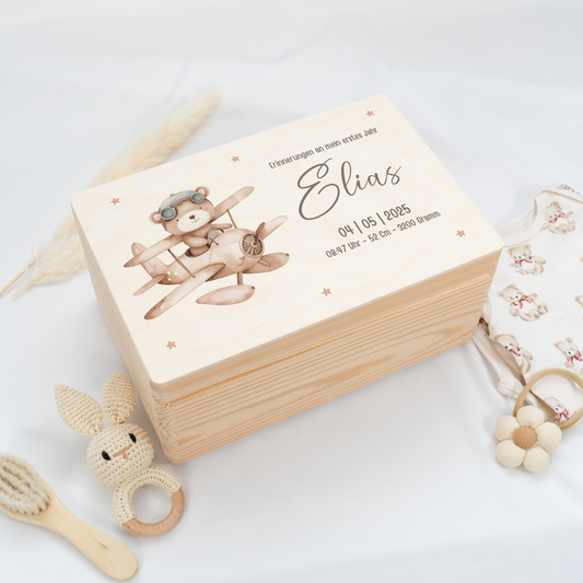 Personalisierte Erinnerungskiste - Teddy Pilot