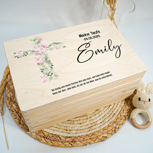 Personalisierte Erinnerungskiste - Meine Taufe Rosa Kreuz