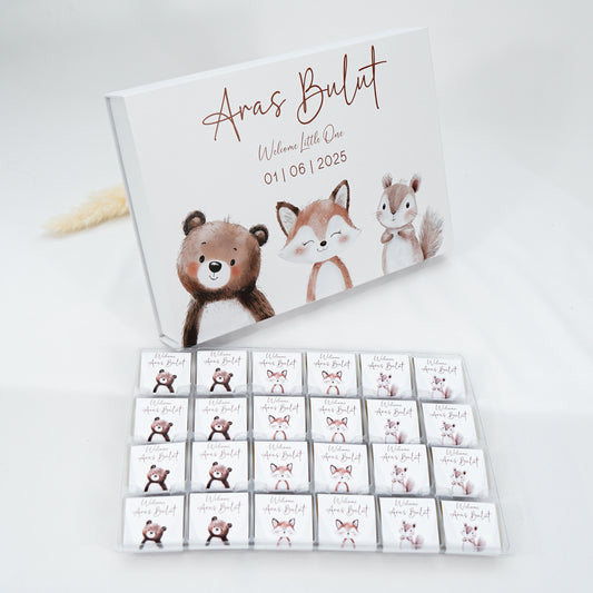 Premium Schokobox personalisiert- Blauer Teddy im Auto