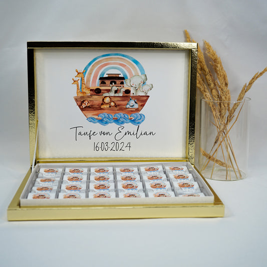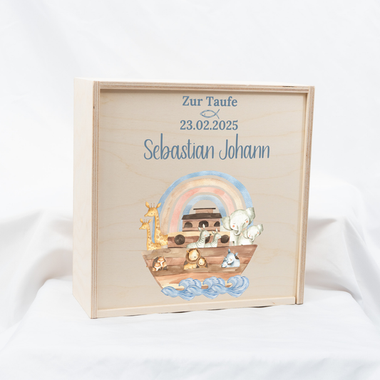 Personalisierte Erinnerungskiste - Arche Noah Taufe mit Schiebedeckel