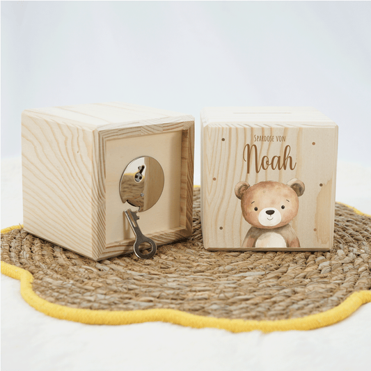 Personalisierte Spardose aus Holz - Süßer Teddybär