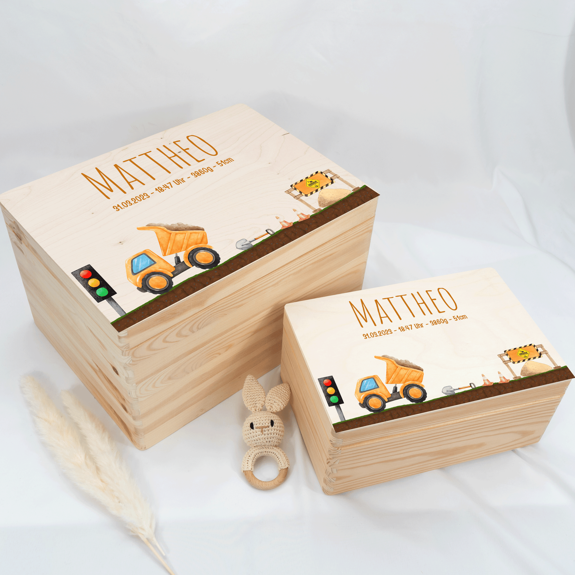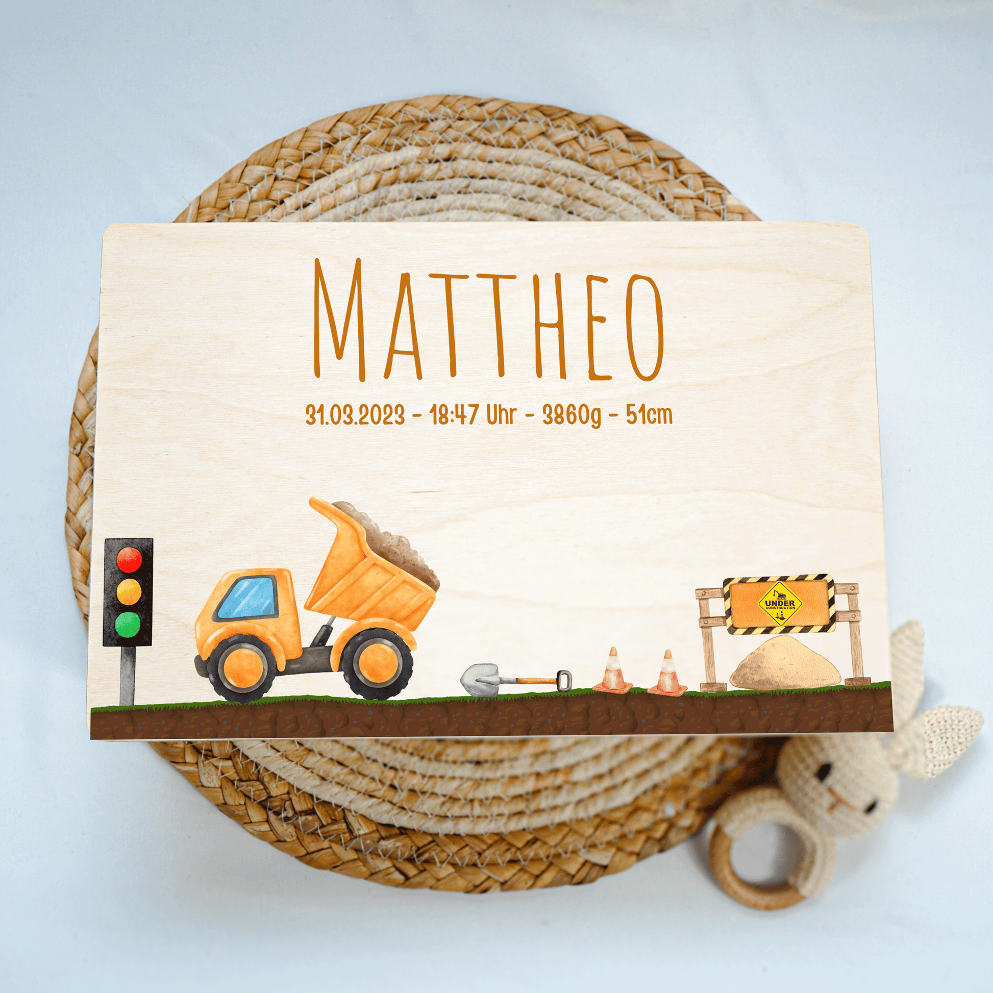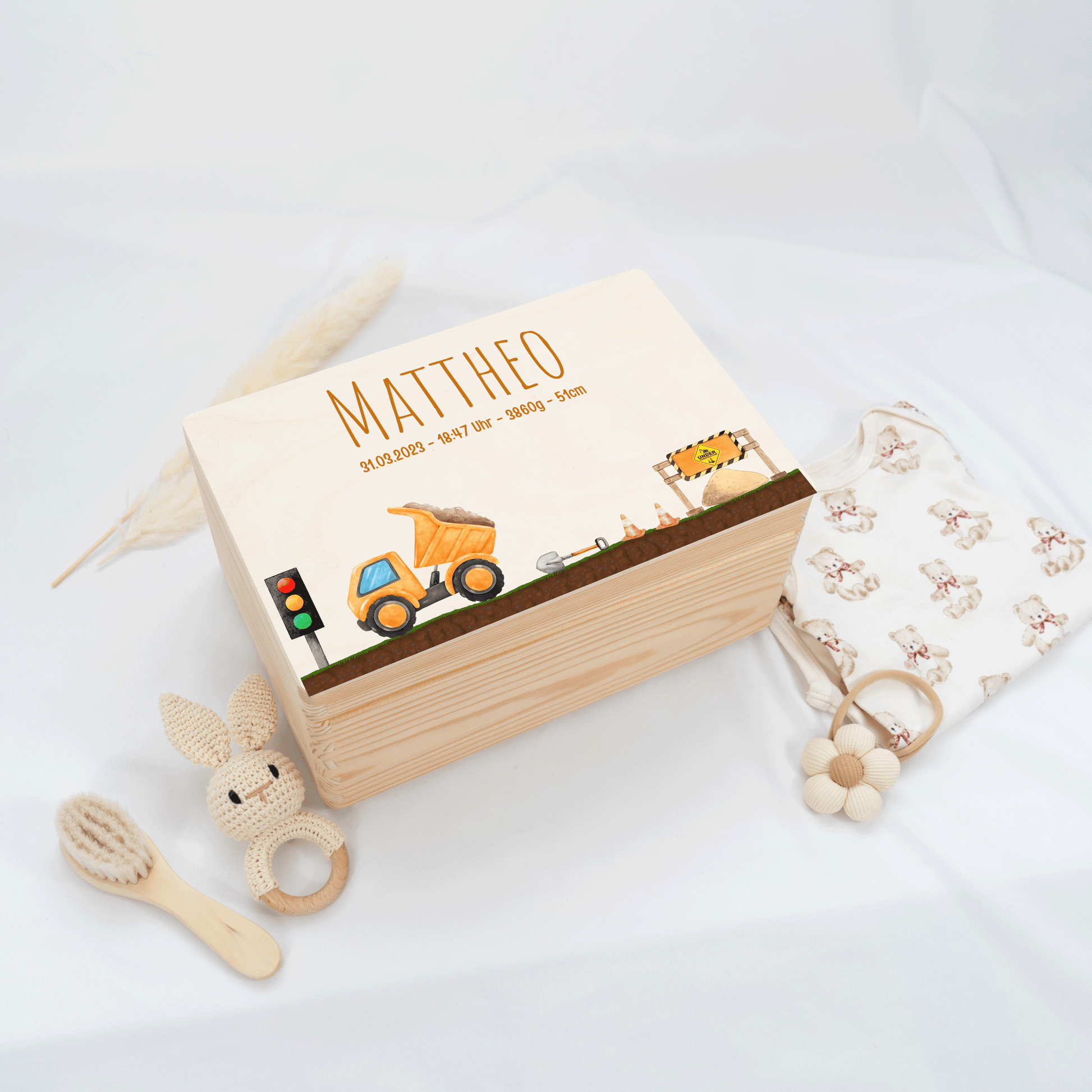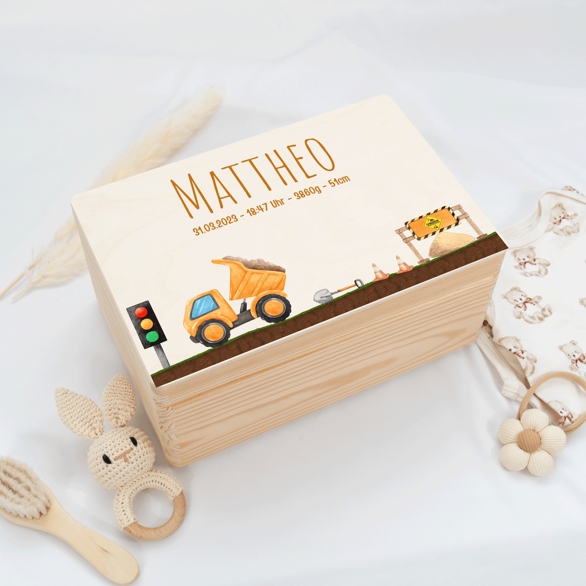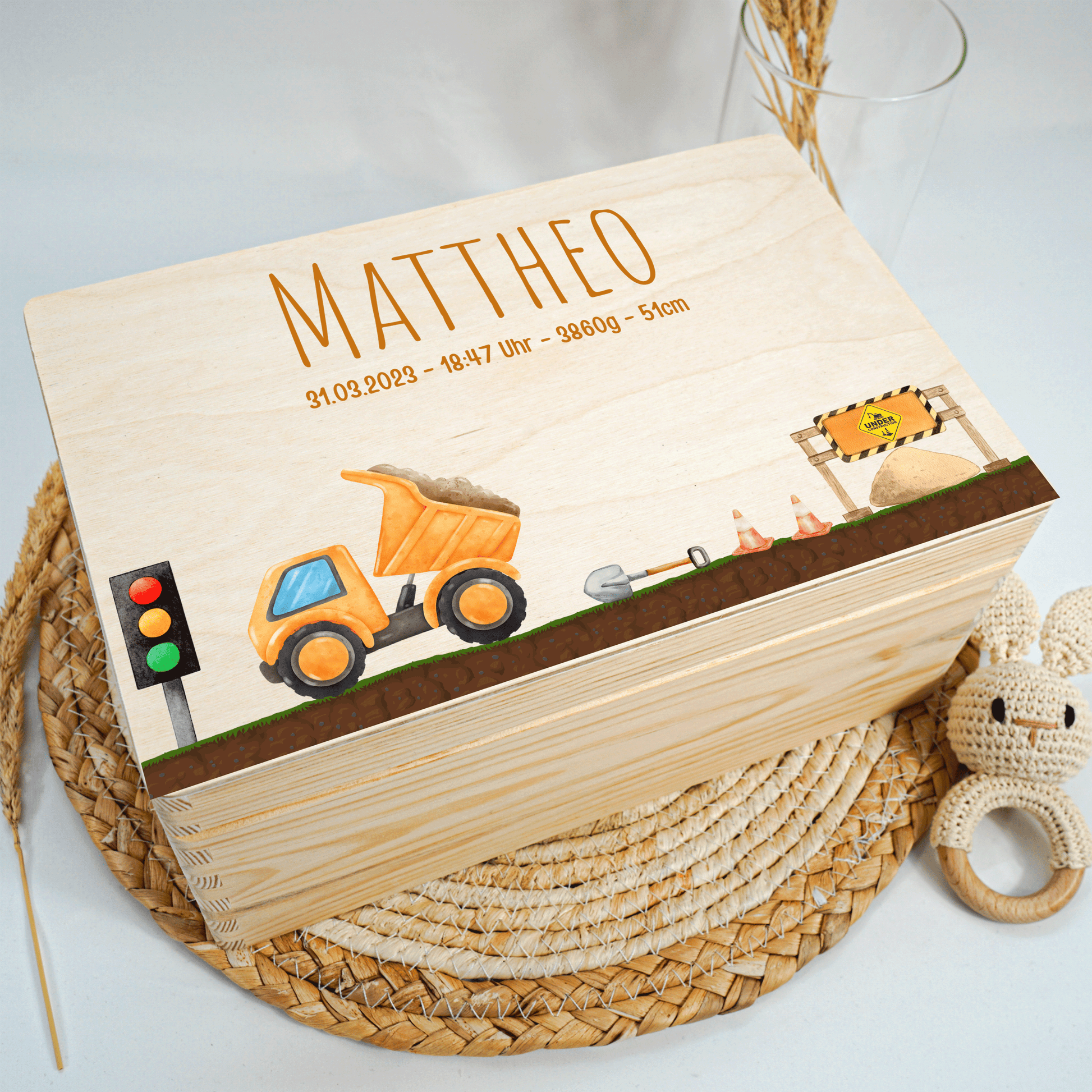 Personalisierte Erinnerungskiste - Bagger & Baustelle