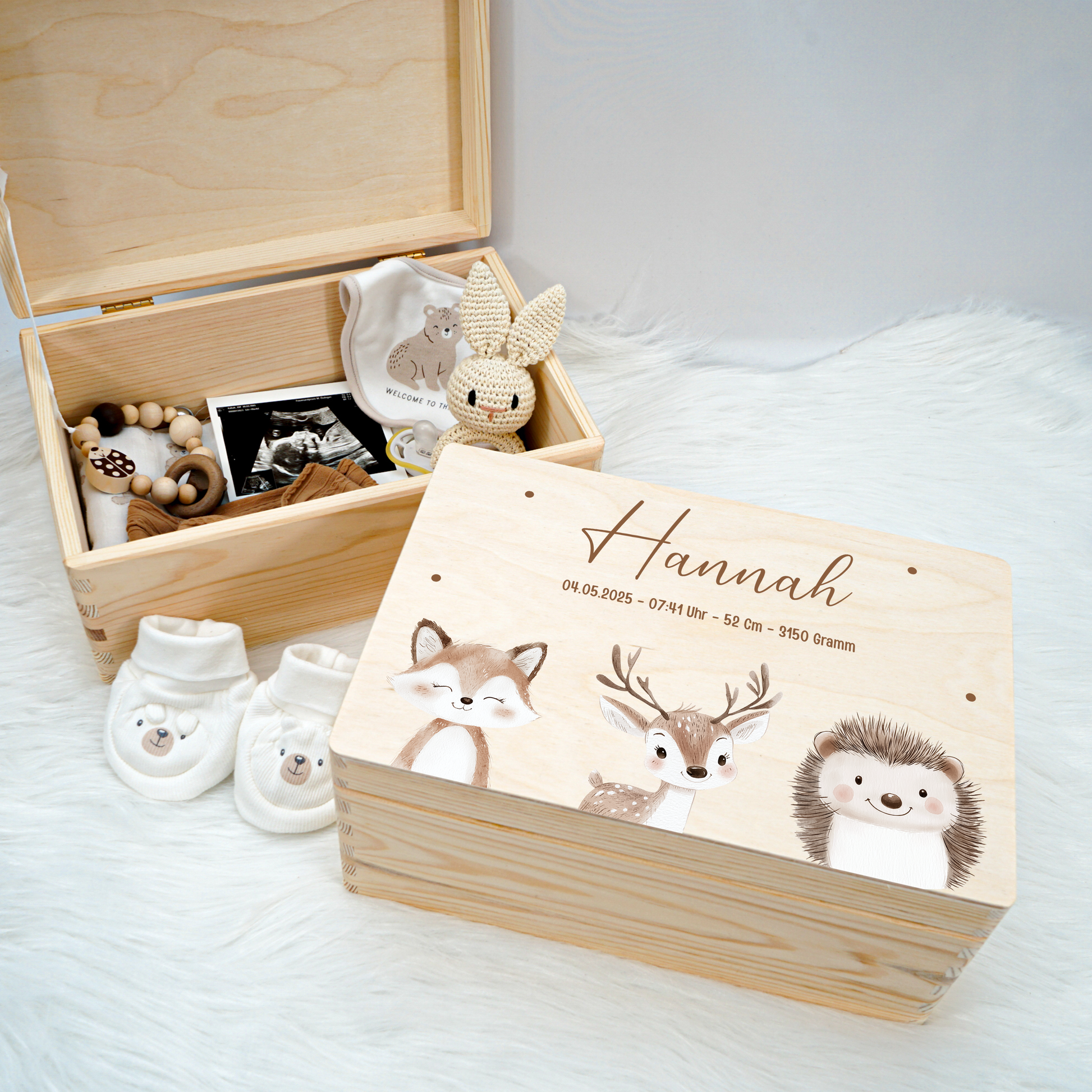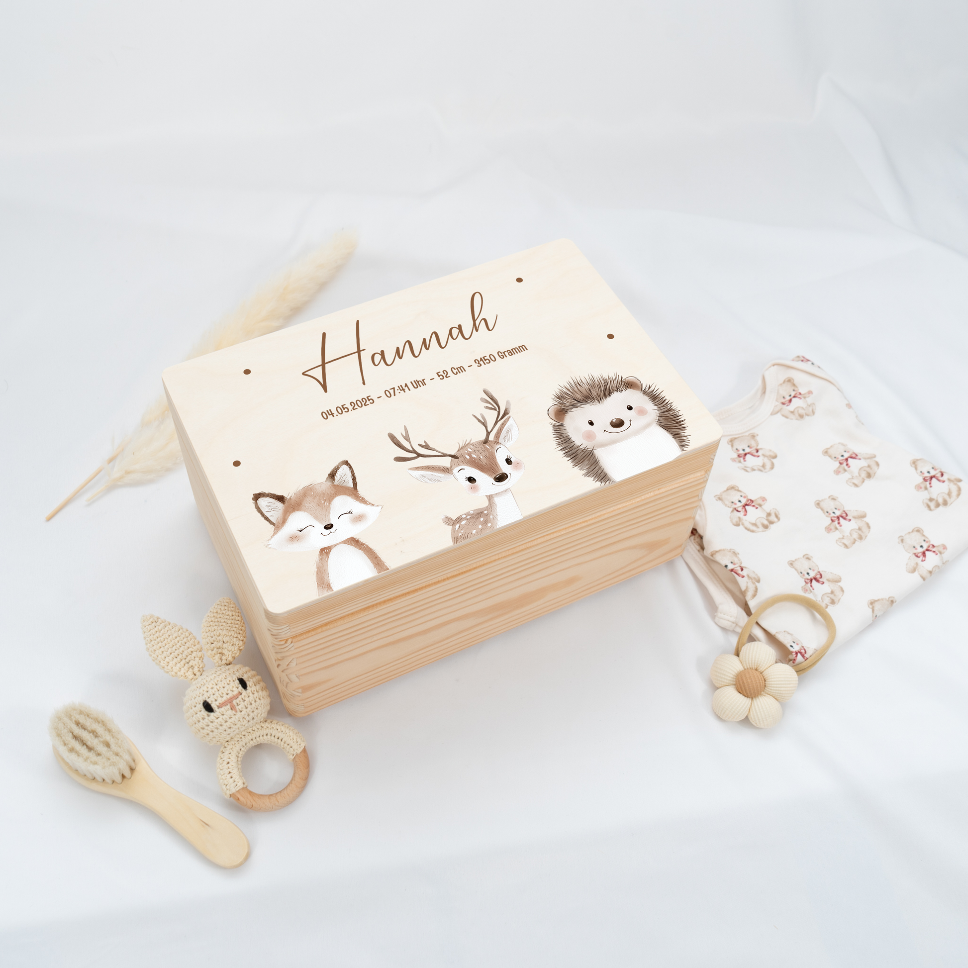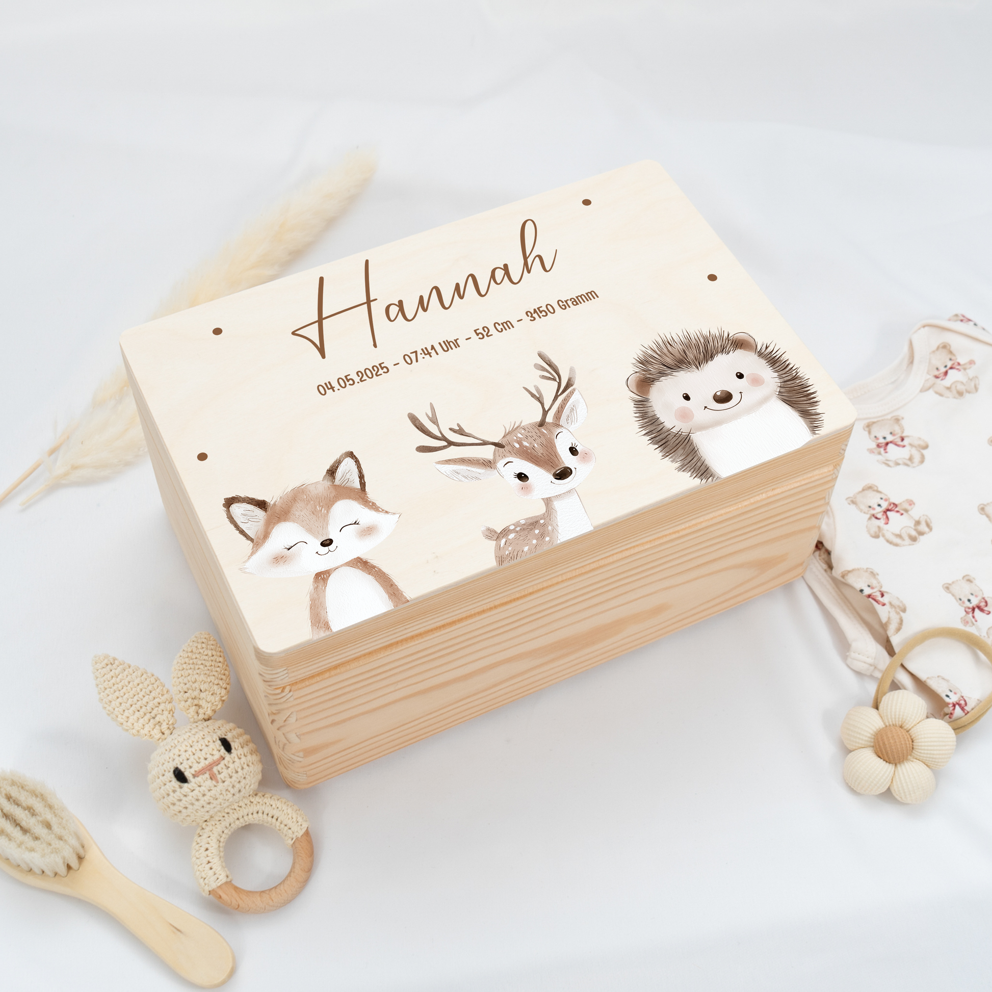 Personalisierte Erinnerungskiste für die schönsten Erinnerungen eines Babys.