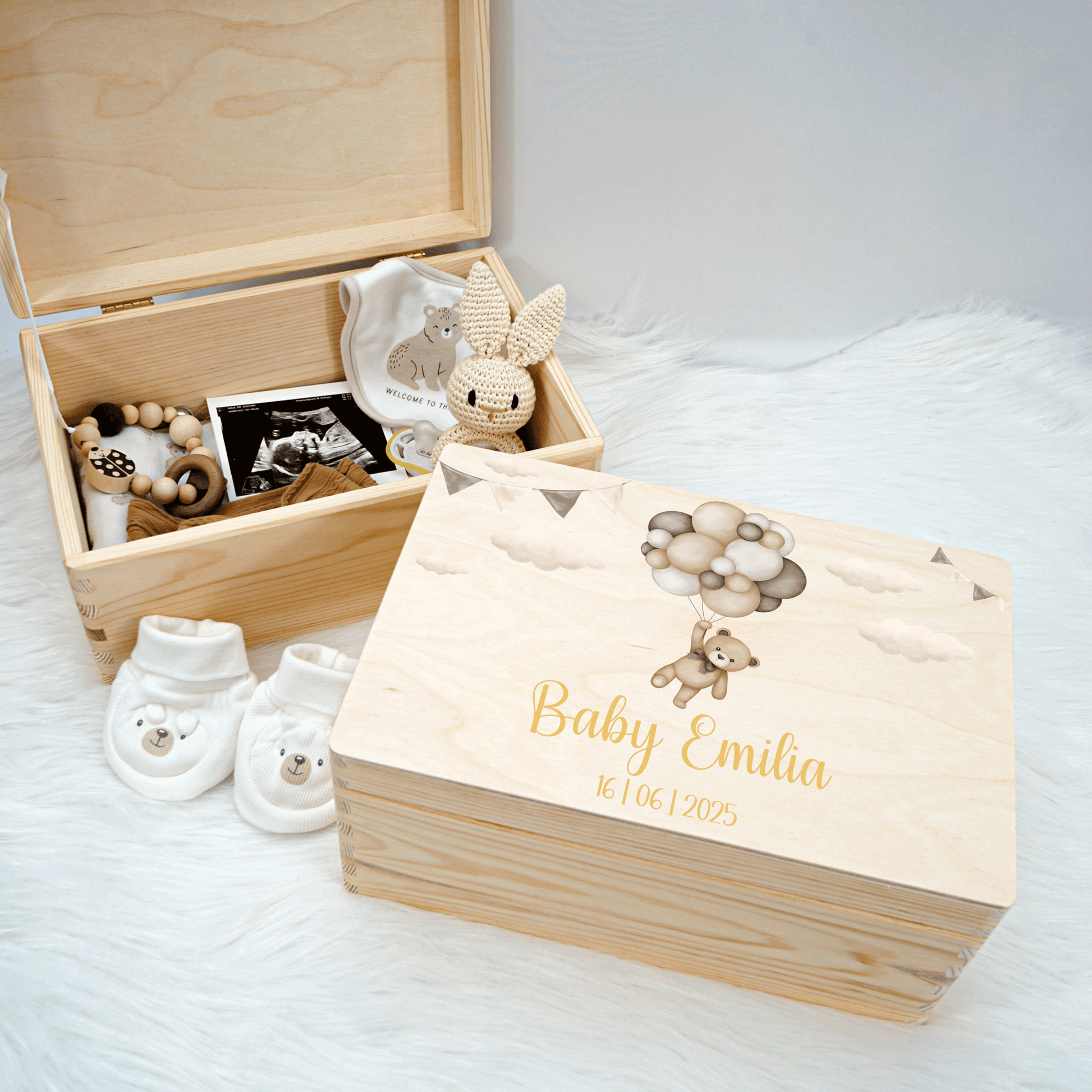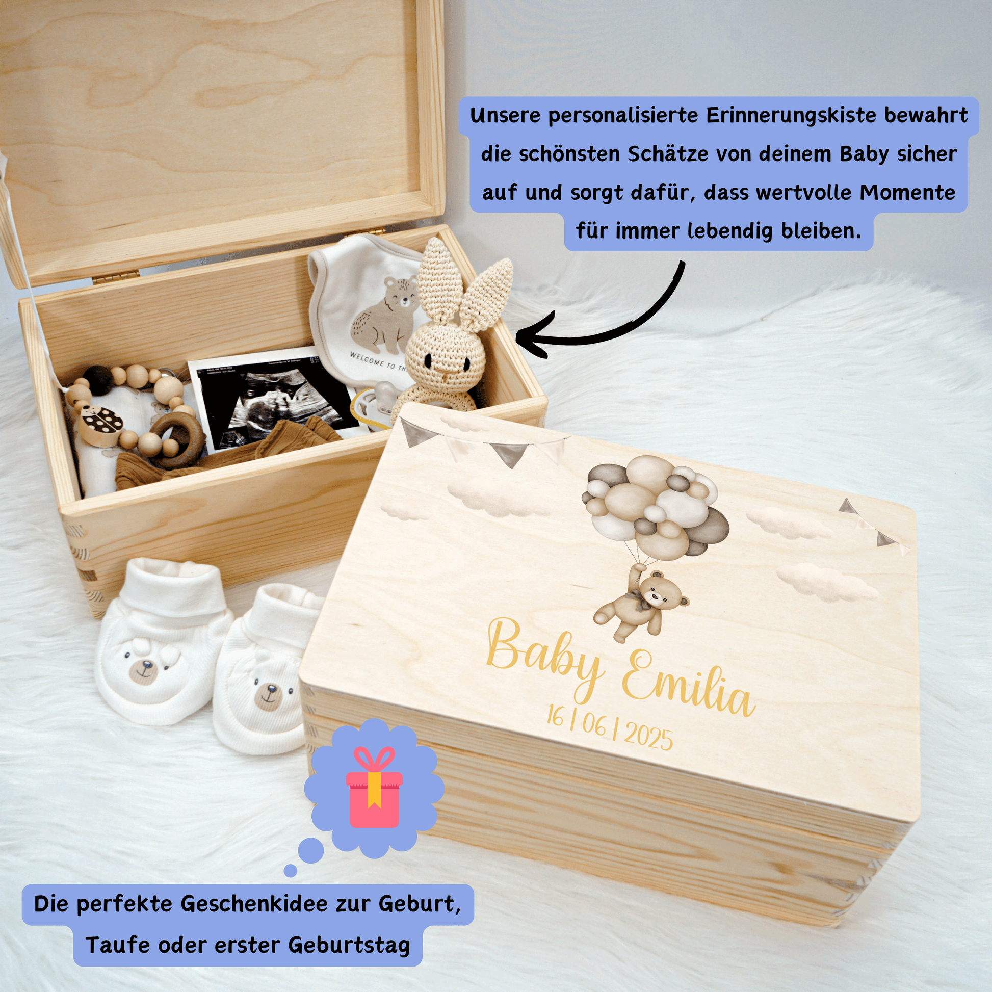 Bestelle jetzt und schenke deinem Baby die wertvollsten Erinnerungen, festgehalten in einer wunderschönen Holzkiste, die für Generationen weitergegeben werden kann.