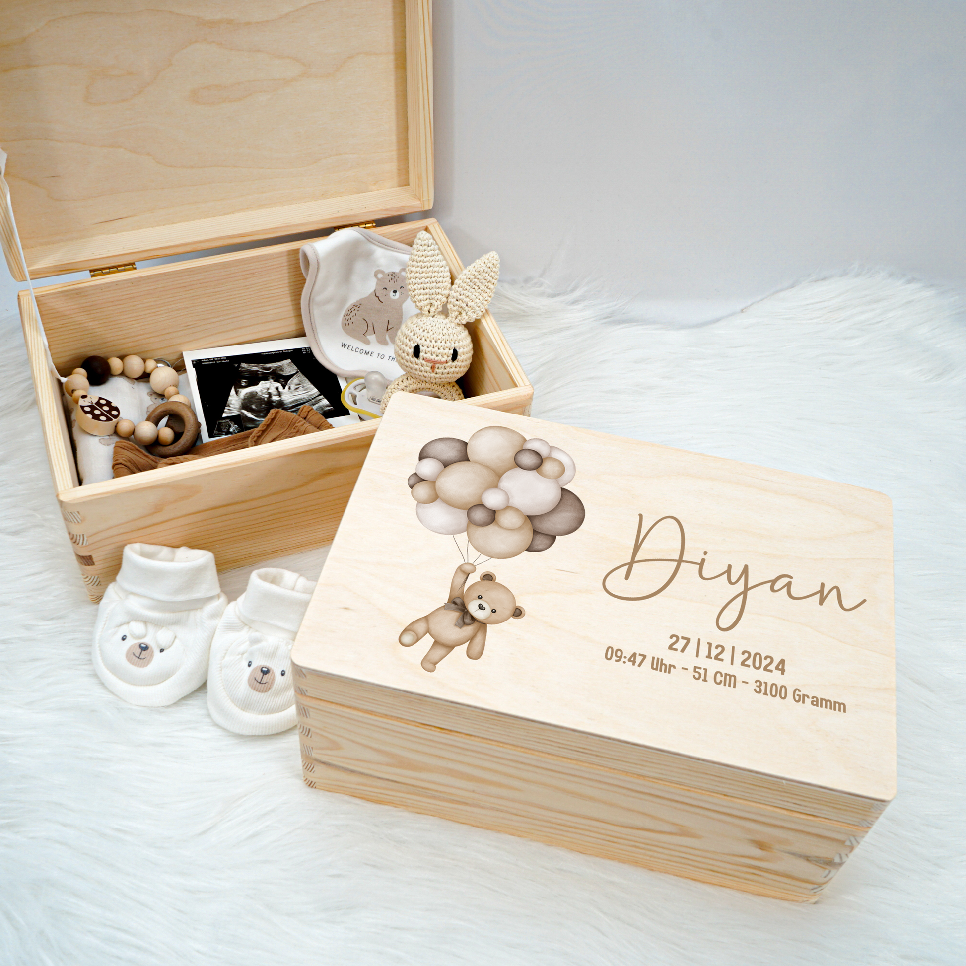 Personalisierte Erinnerungskiste für die schönsten Erinnerungen eines Babys.