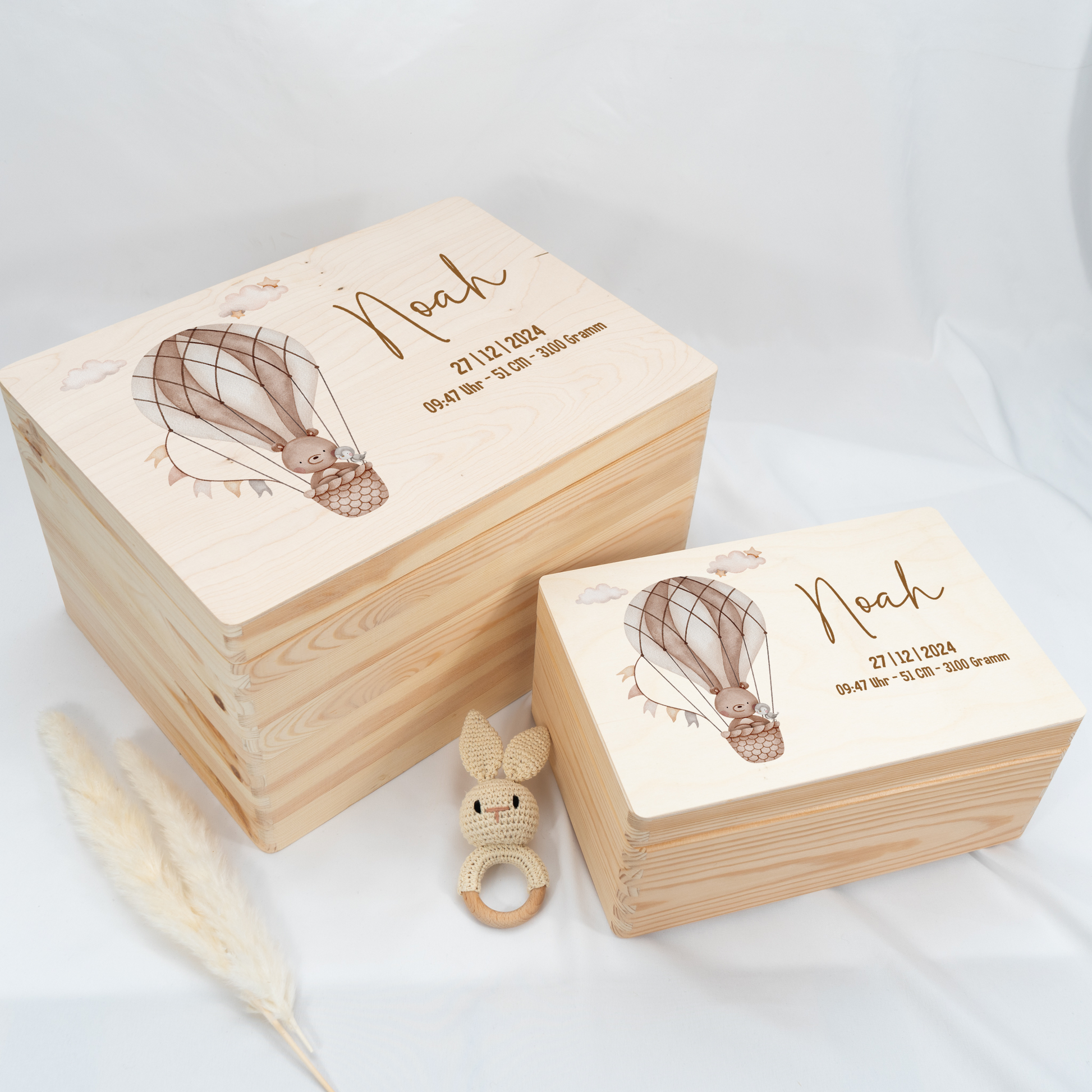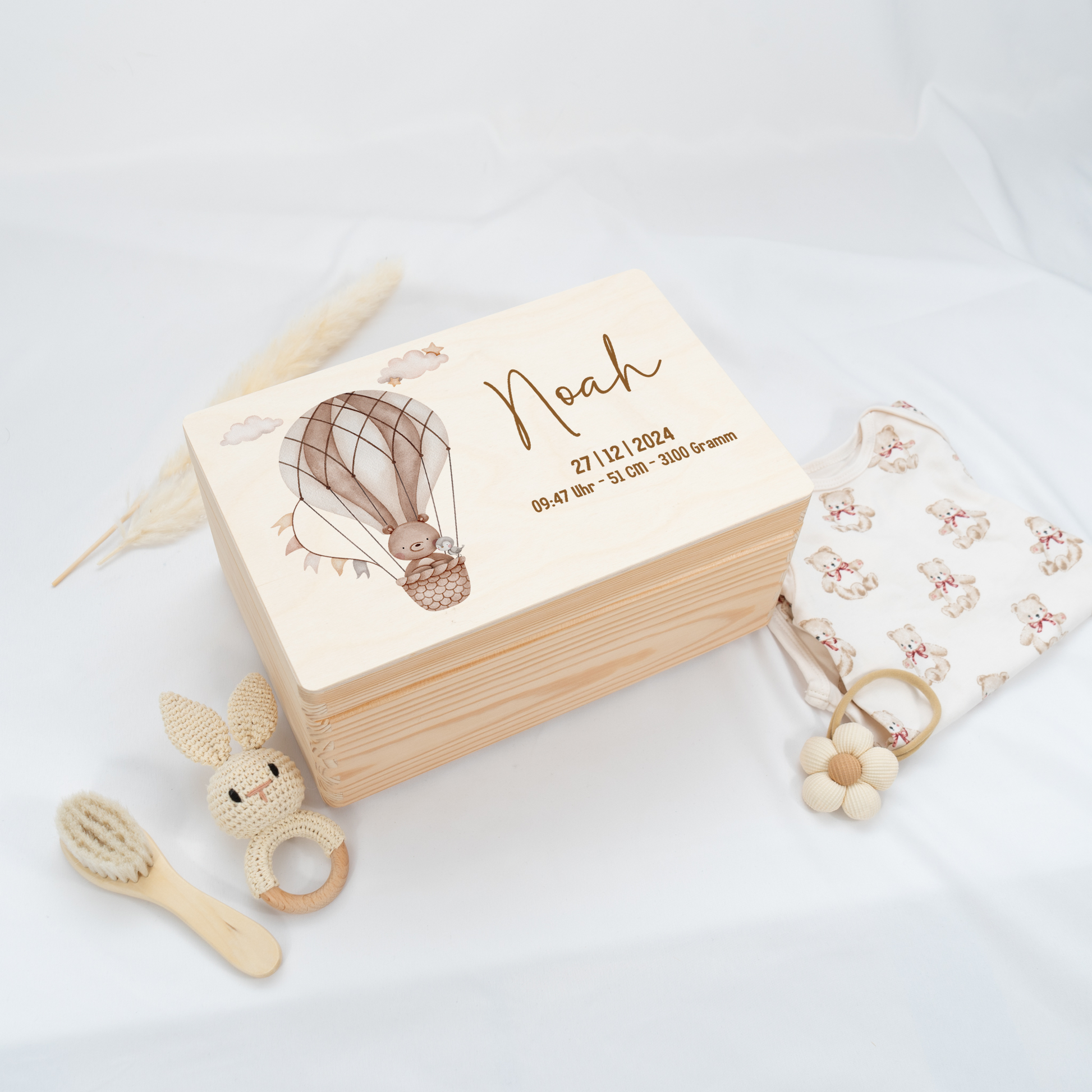 Personalisierte Erinnerungskiste - Boho Bär im Heißluftballon