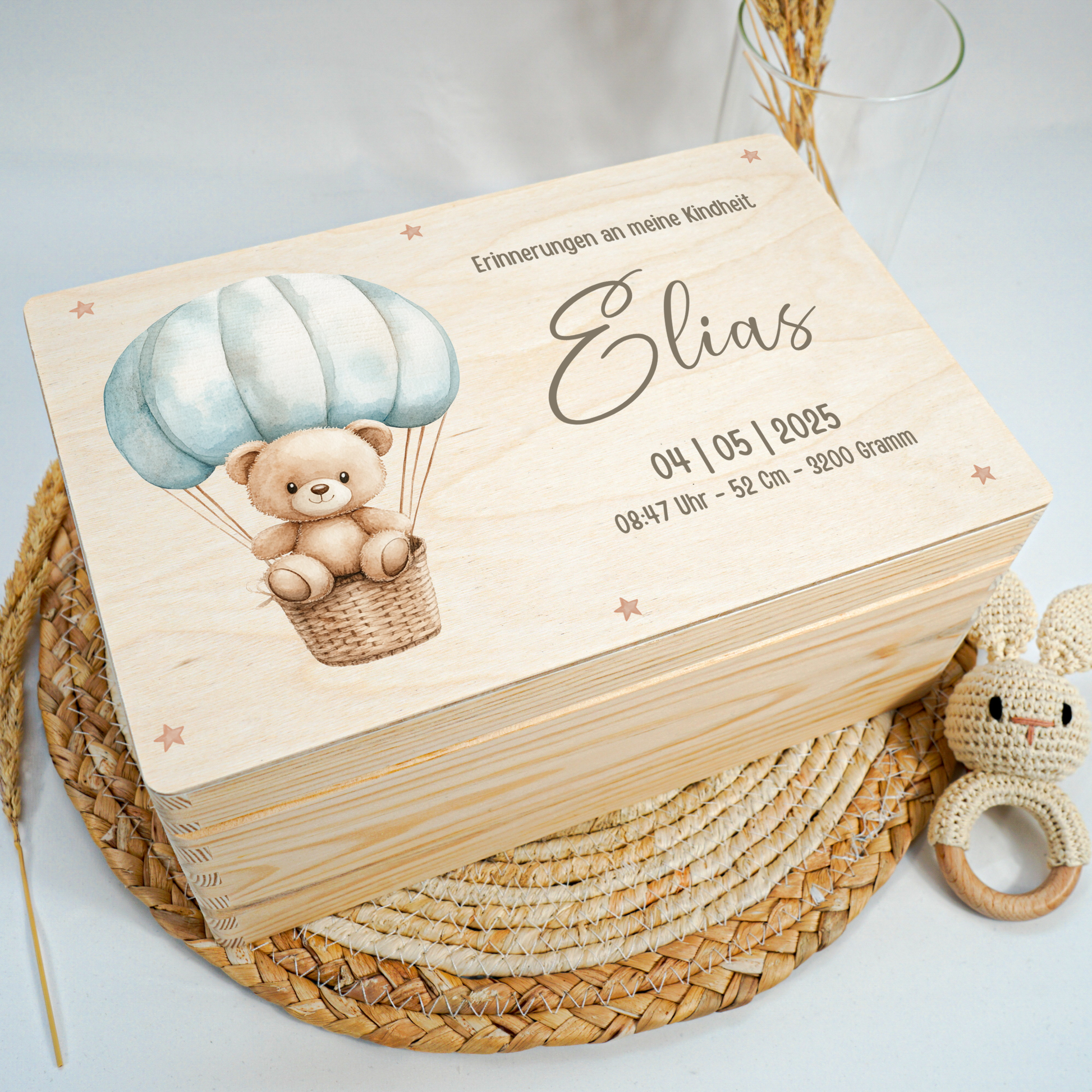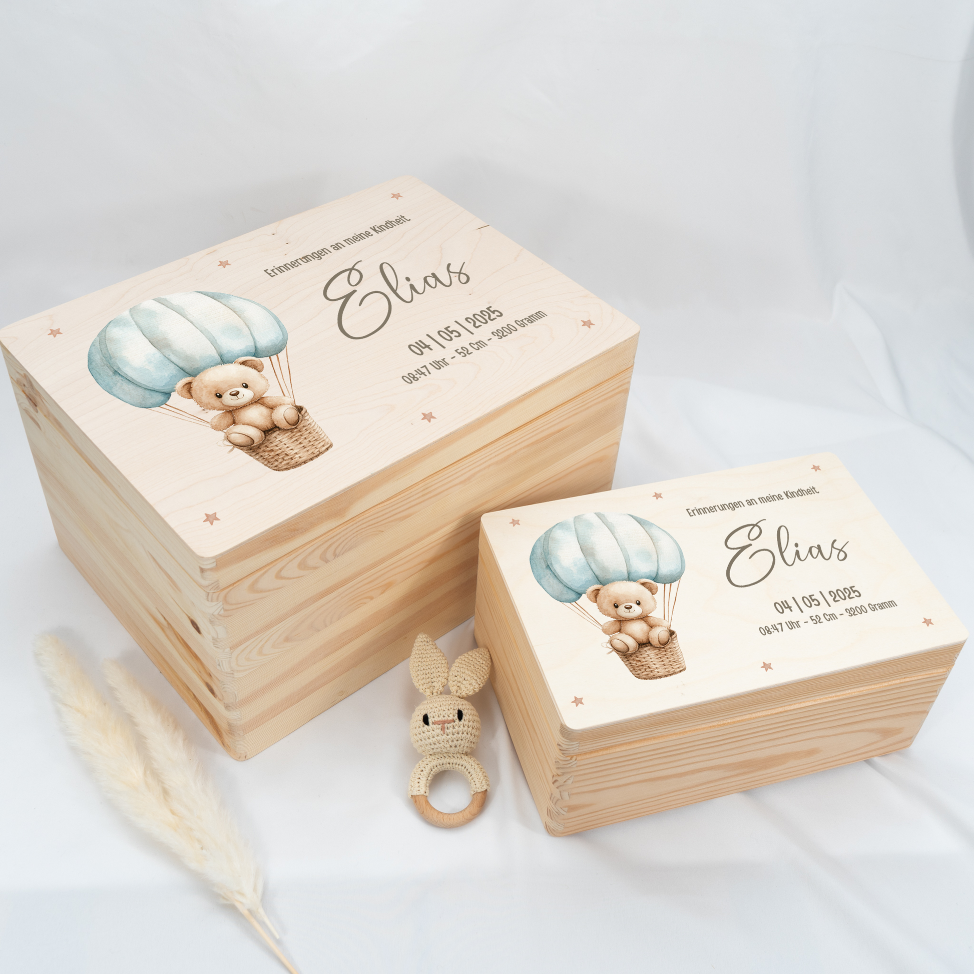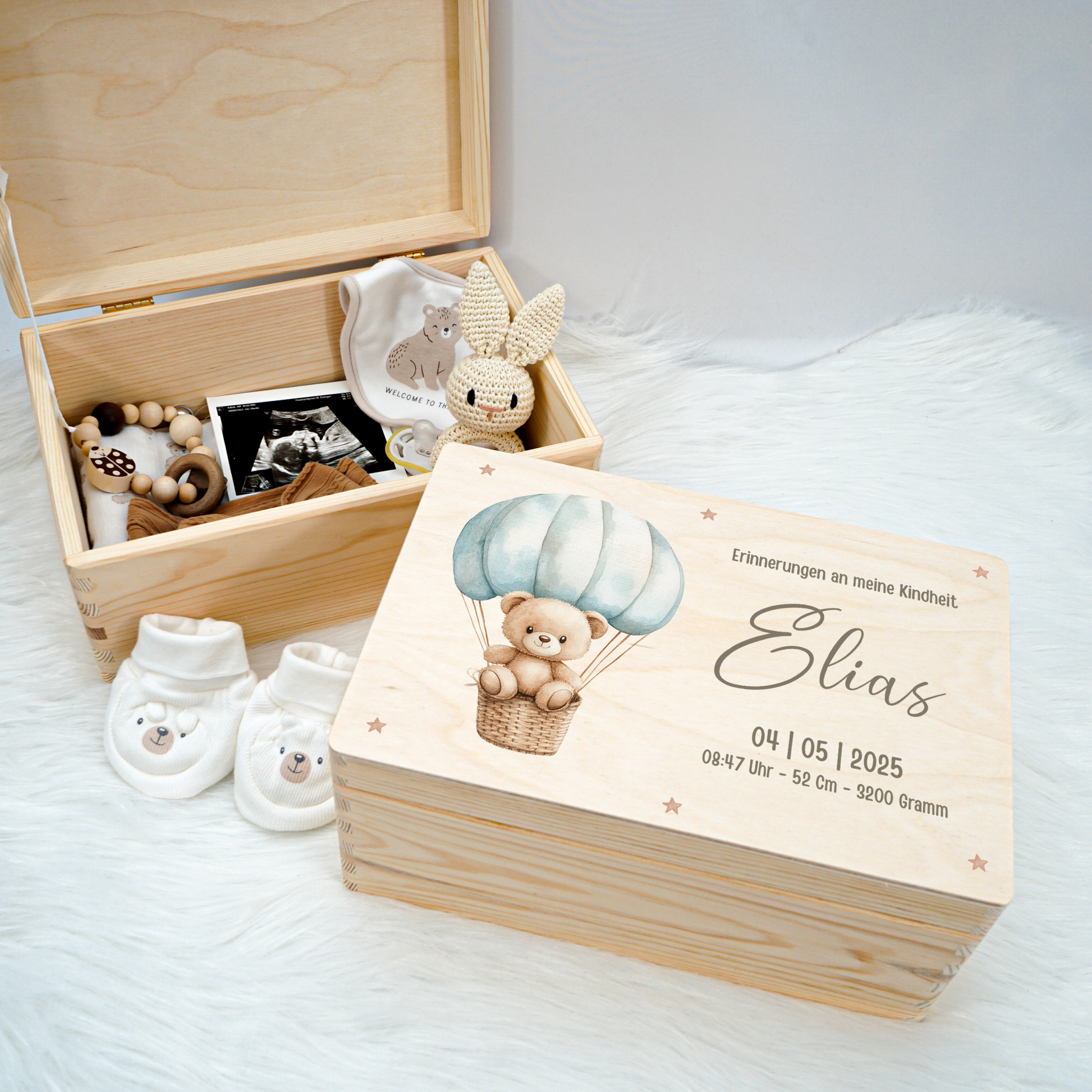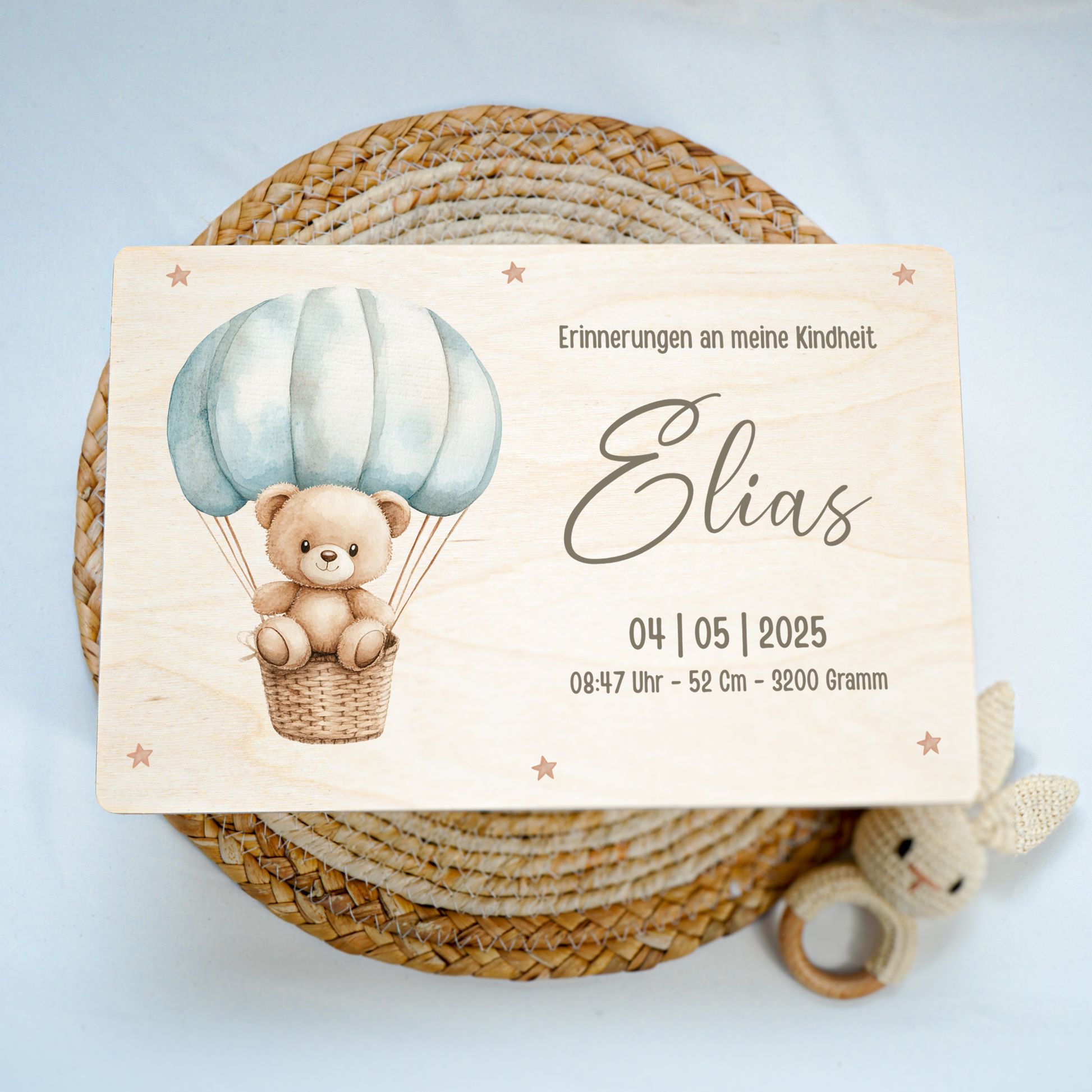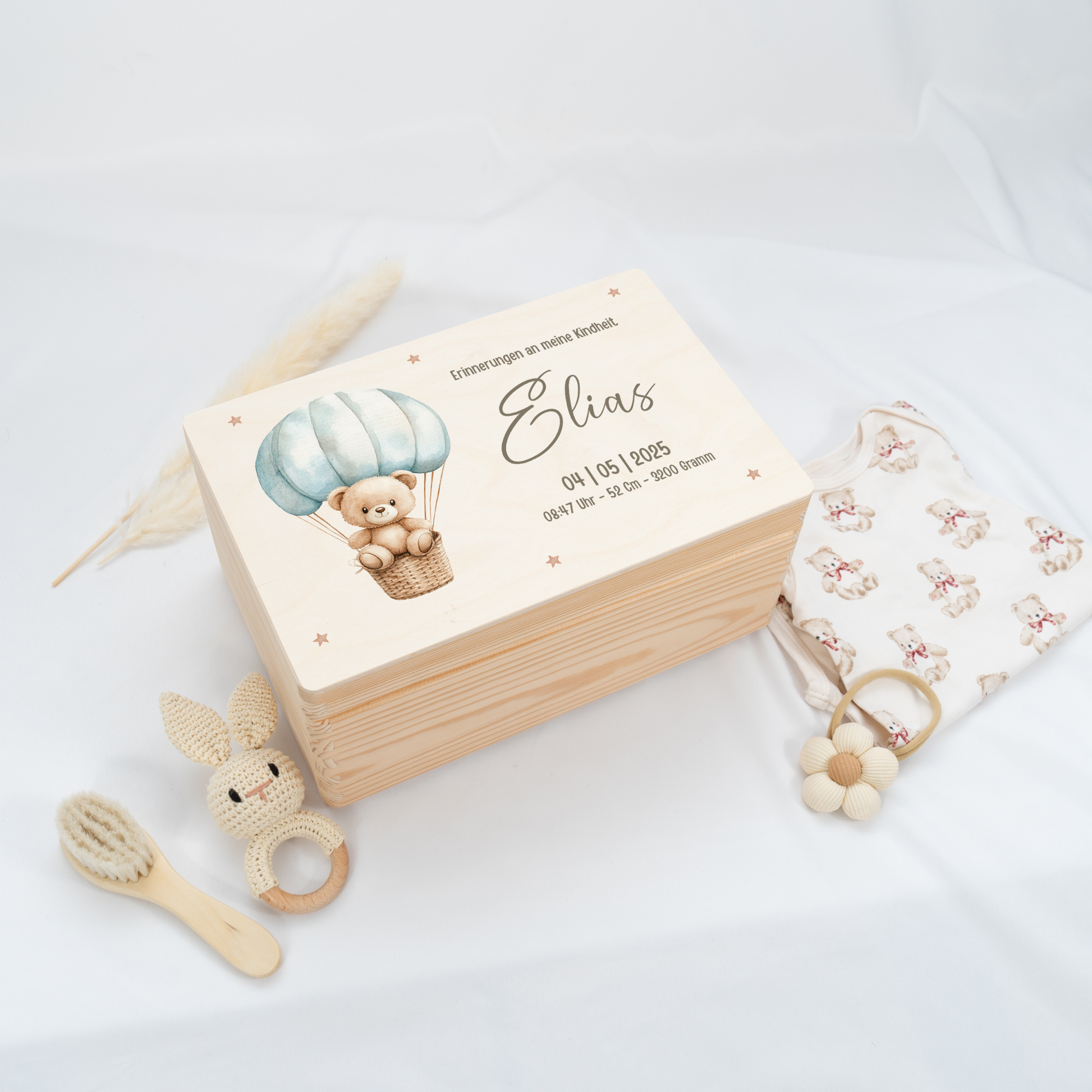 Personalisierte Erinnerungskiste - Niedlicher Teddy & Heißluftballon