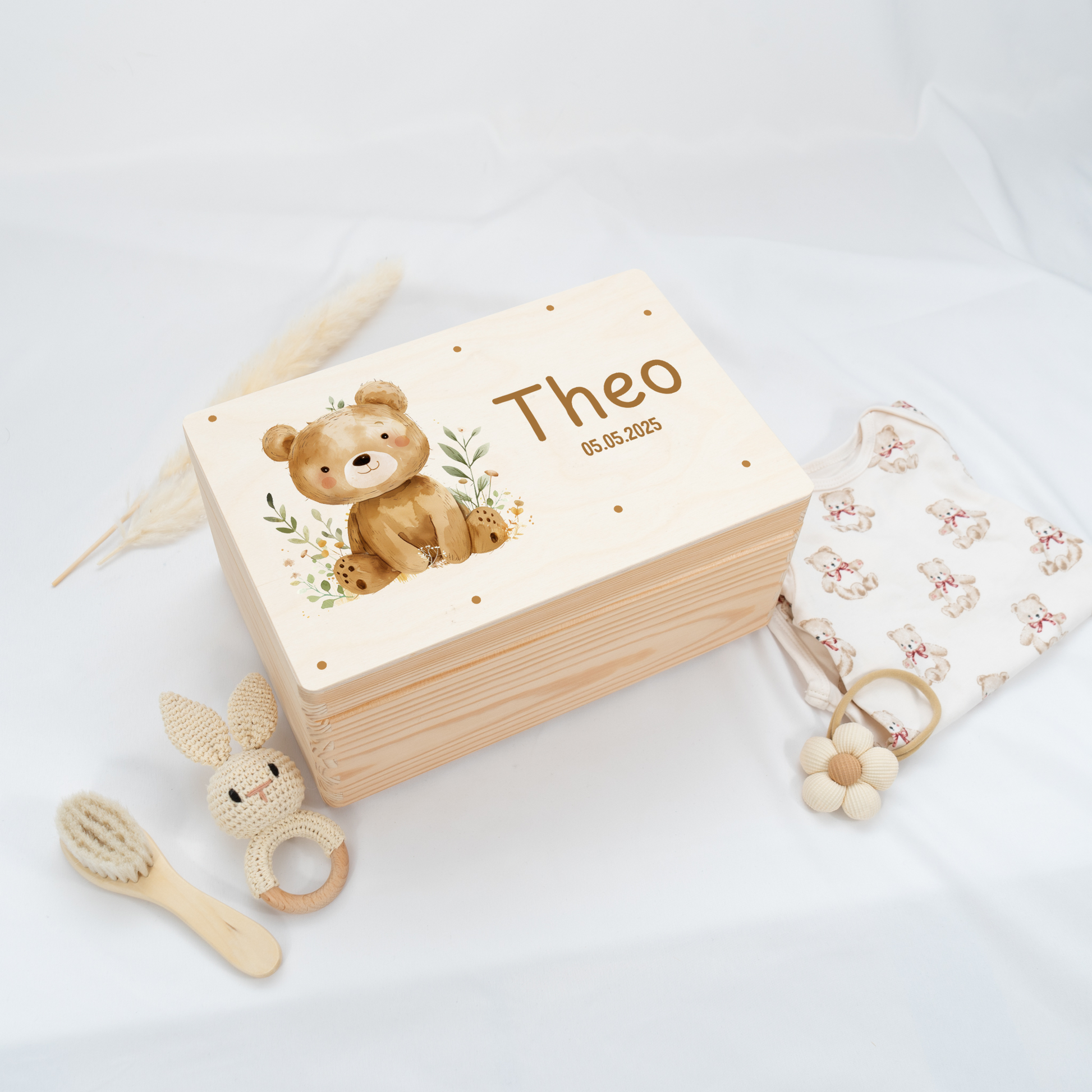 Personalisierte Erinnerungskiste für die schönsten Erinnerungen eines Babys.