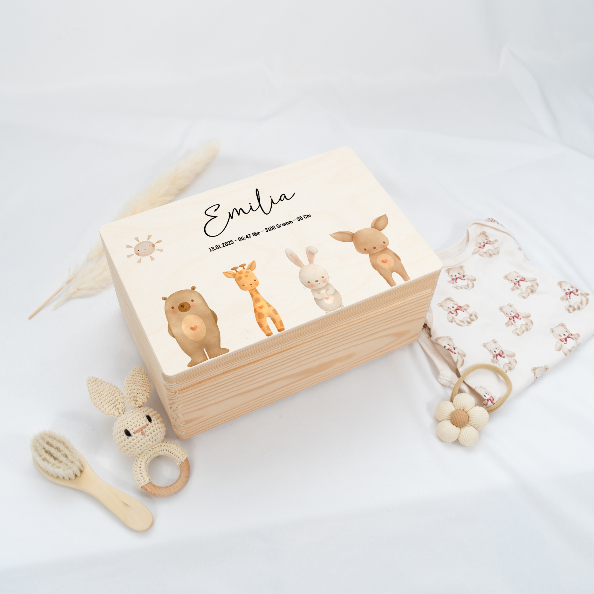 Personalisierte Erinnerungskiste für die schönsten Erinnerungen eines Babys.