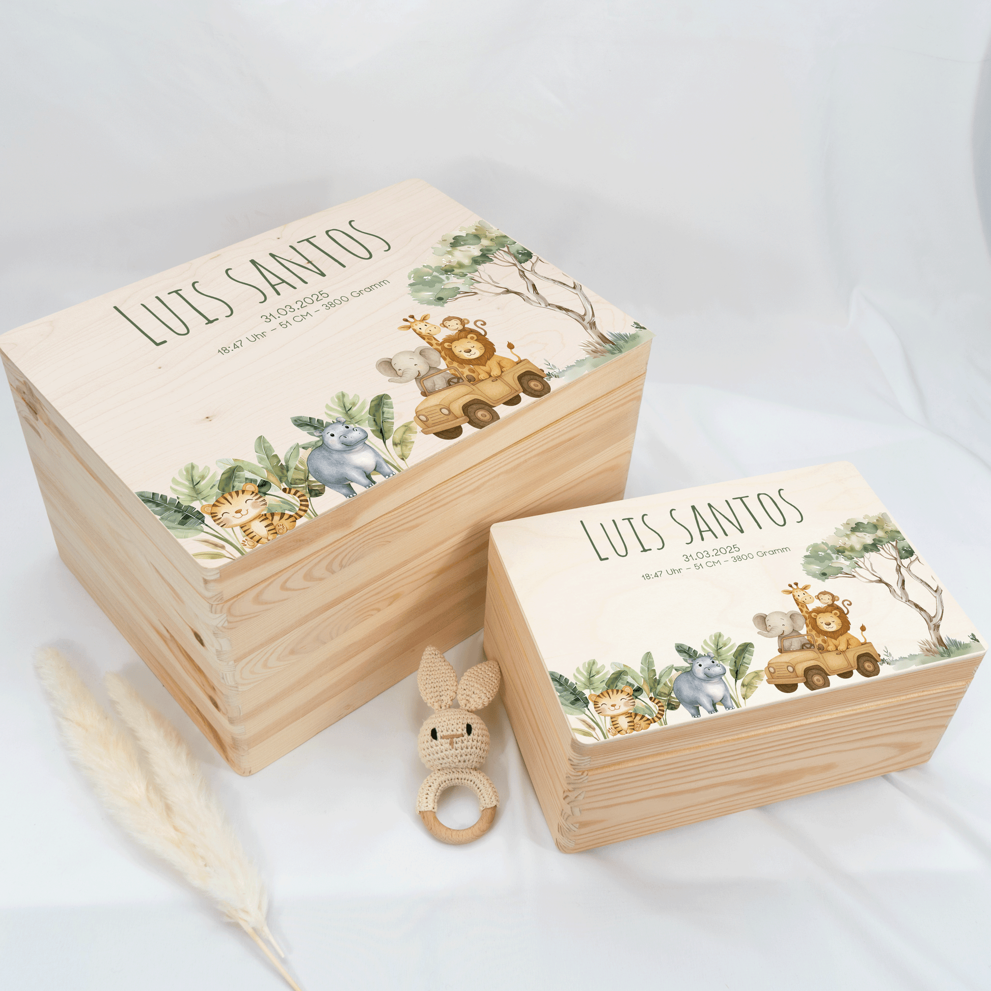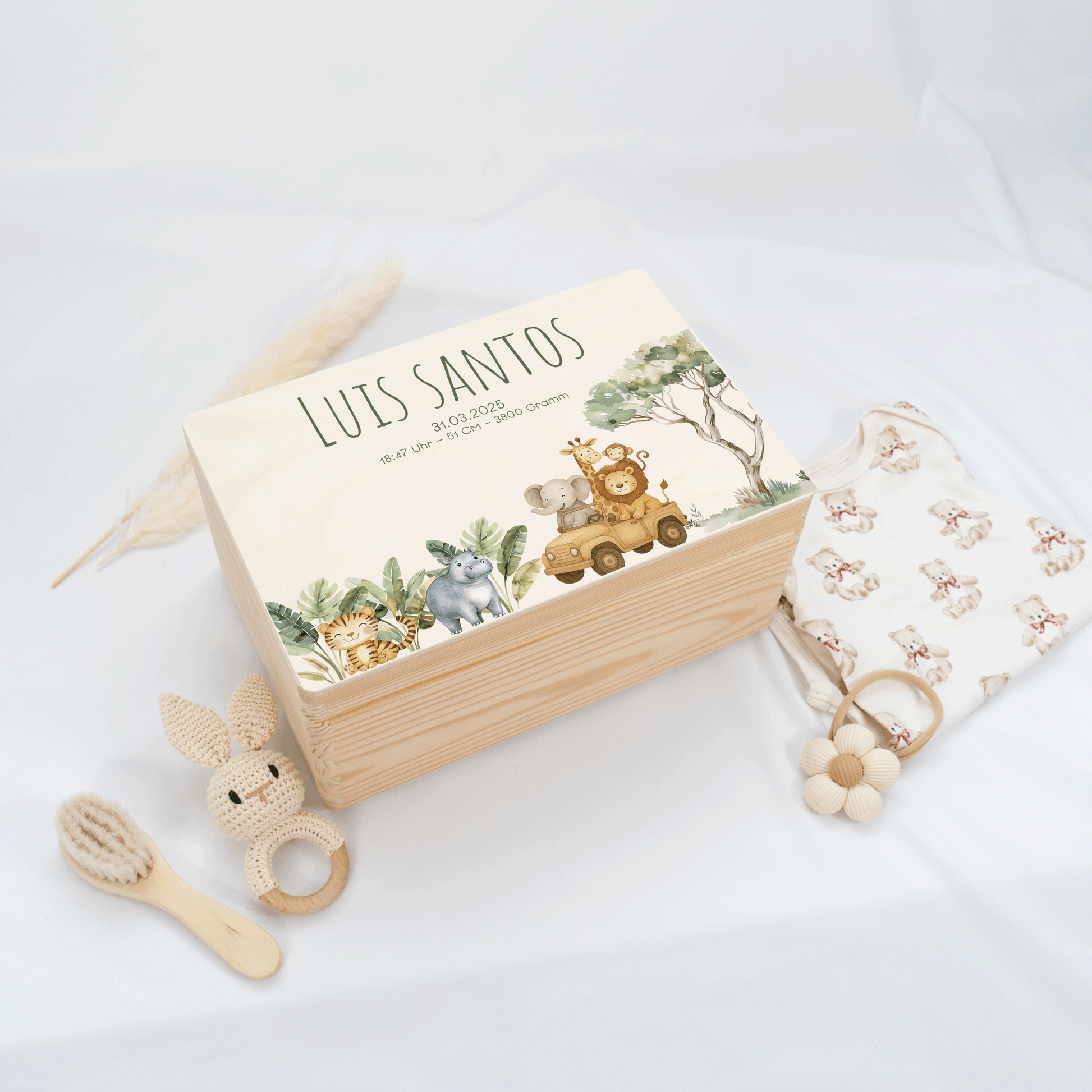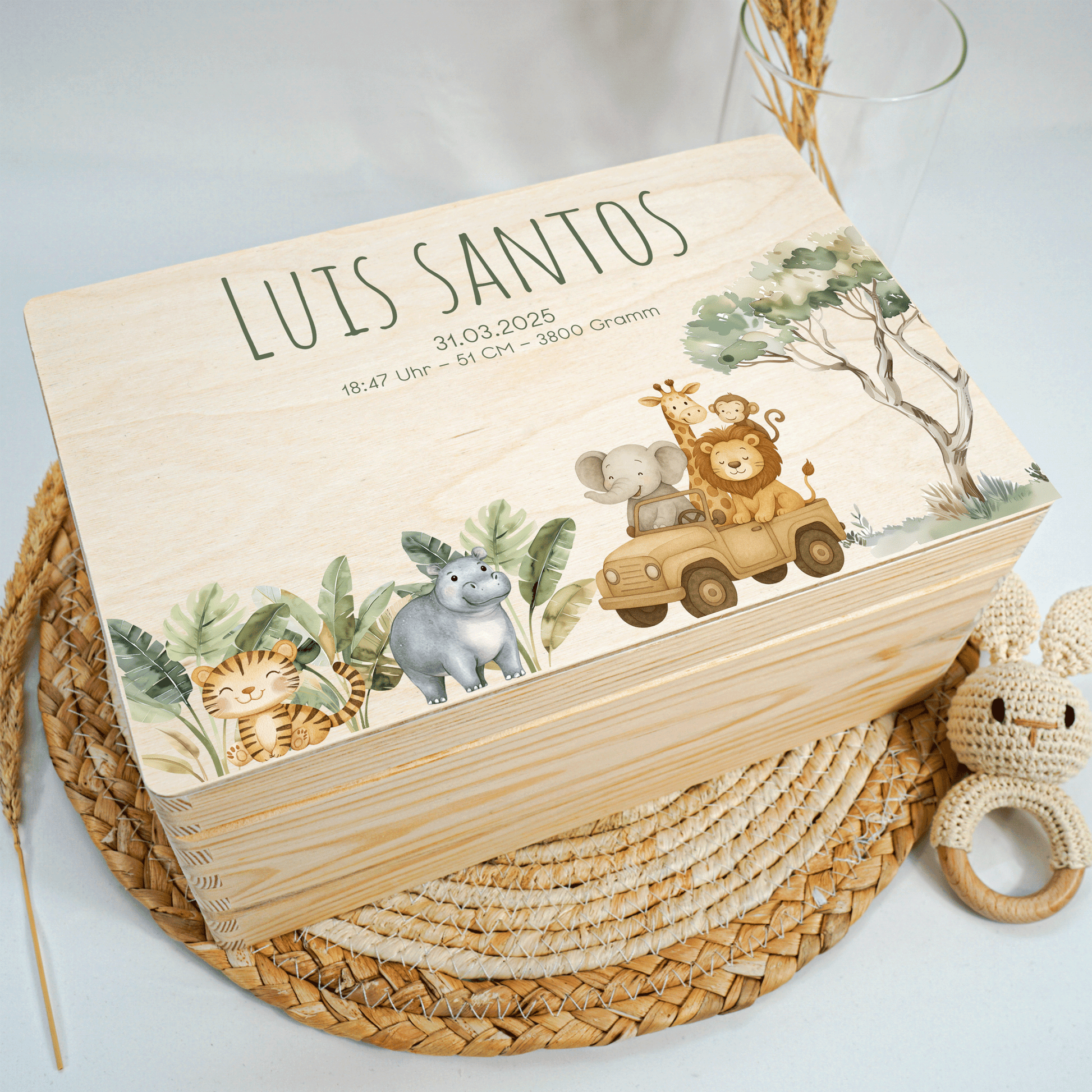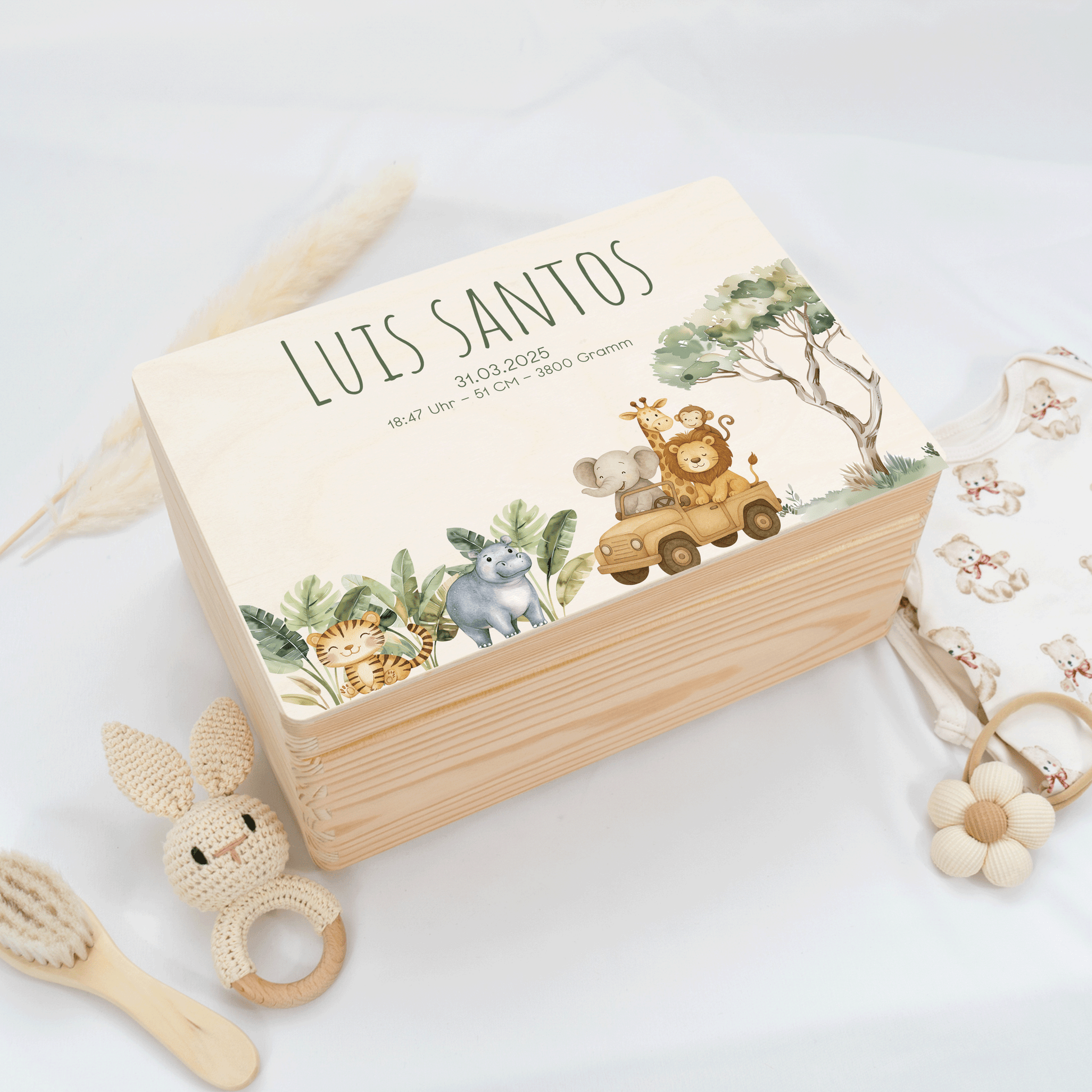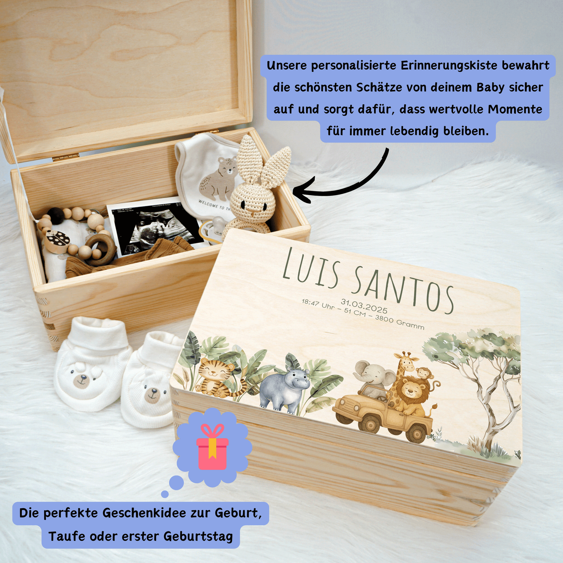 Personalisierte Erinnerungskiste - Safari Freunde im Auto