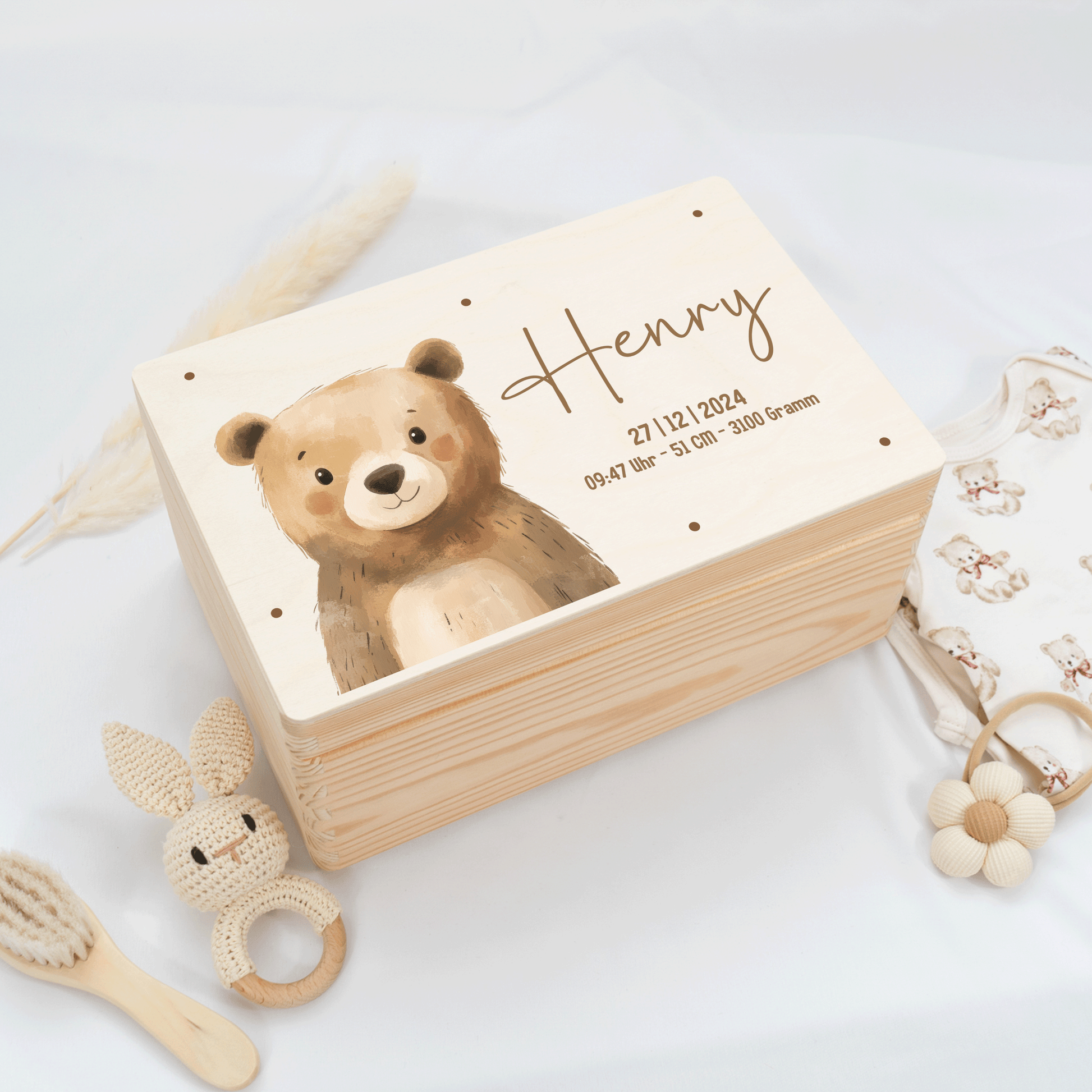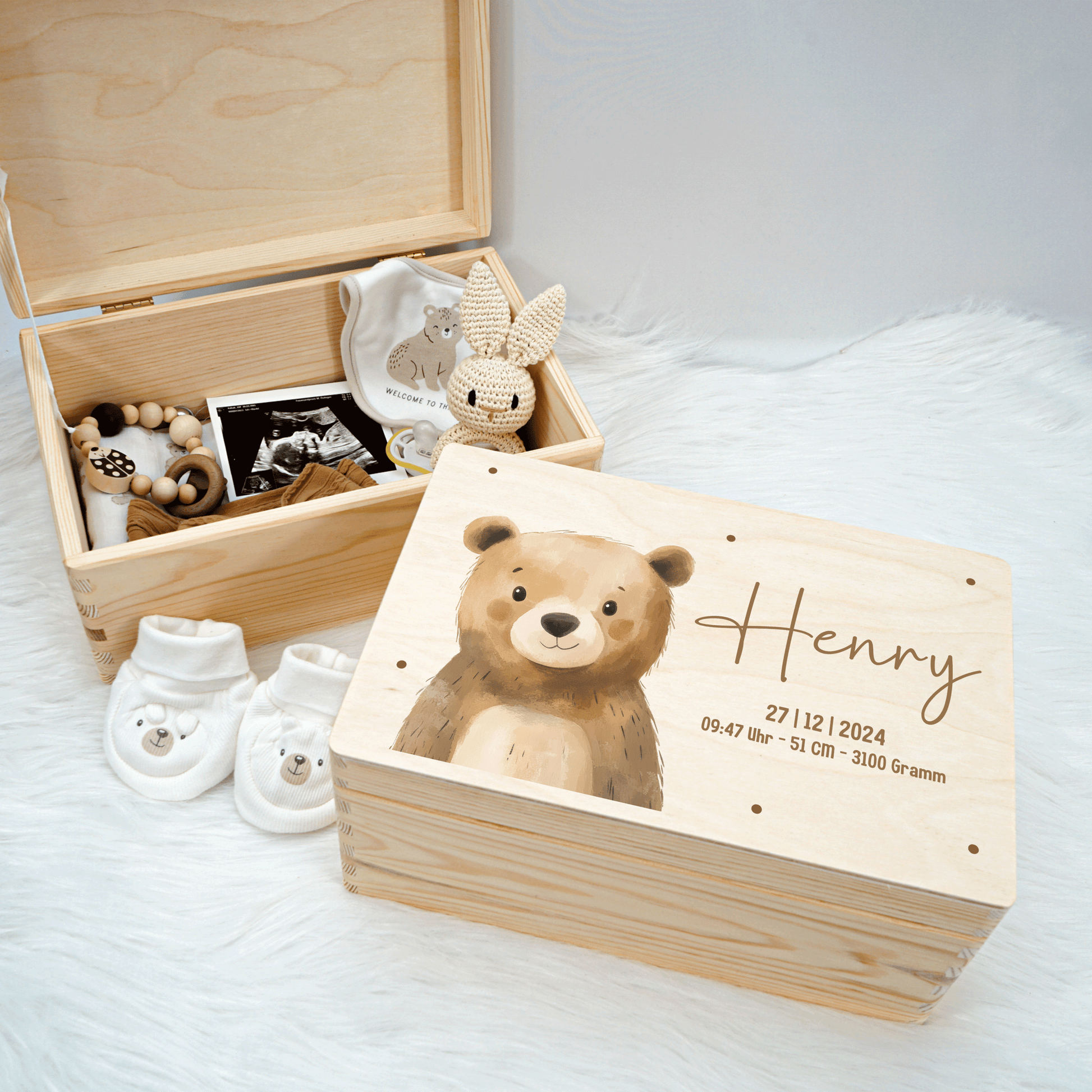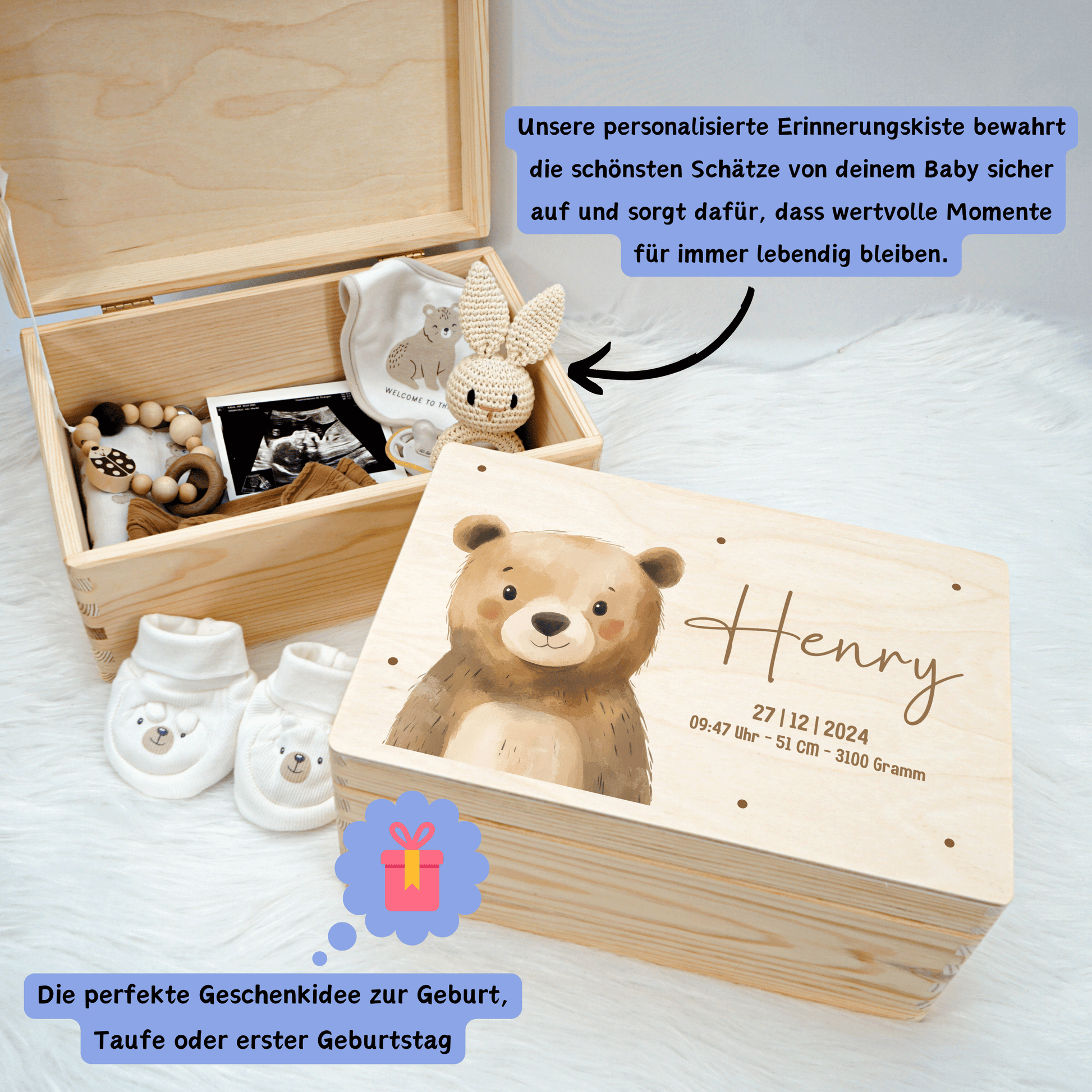 Die Kiste ist das ideale Geschenk zur Geburt 👶, Taufe, dem ersten Geburtstag 🎂 oder zu anderen besonderen Lebensmomenten. Ein Erinnerungsstück, das über viele Jahre Freude bereitet.