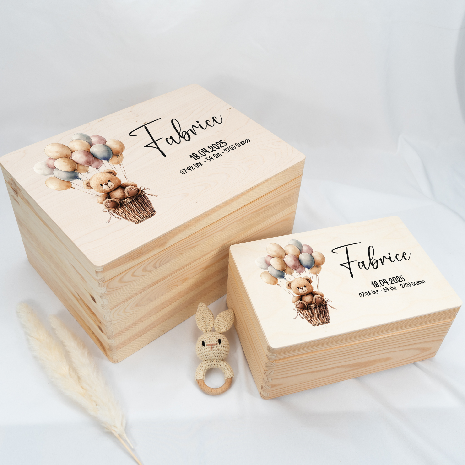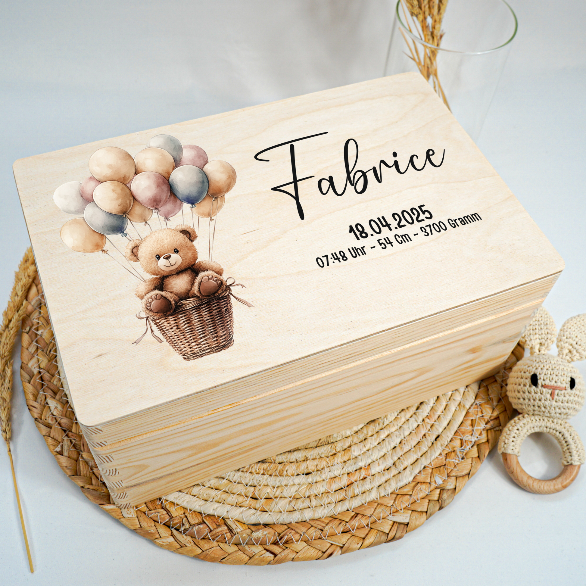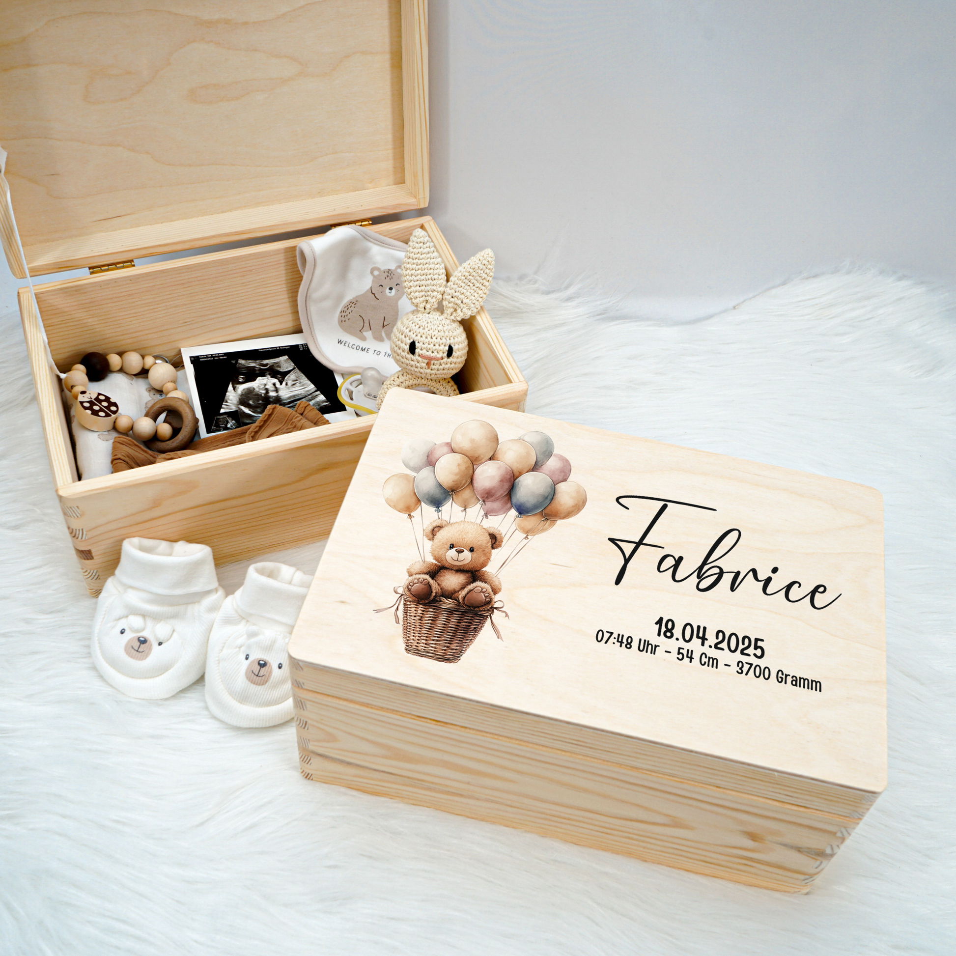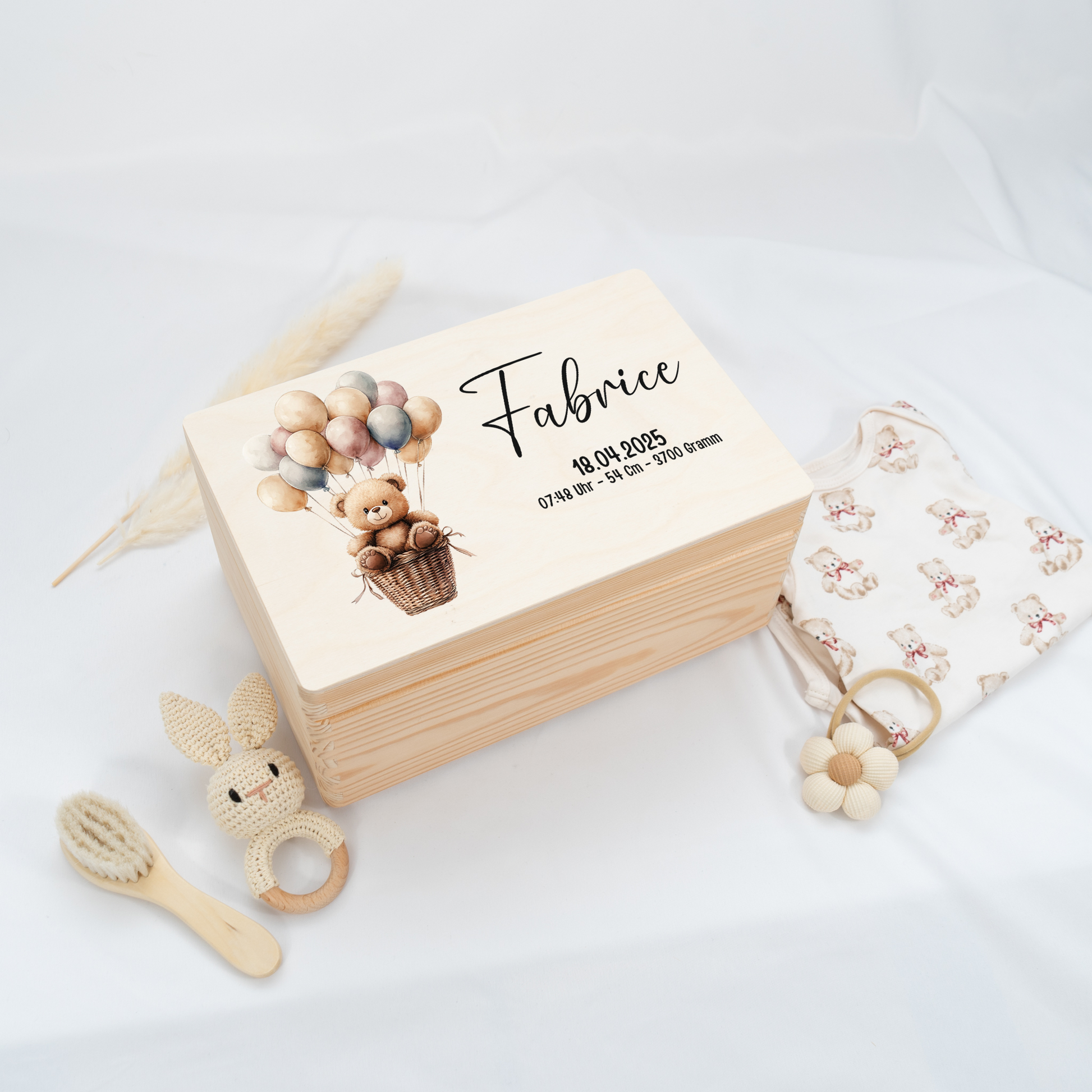 Personalisierte Erinnerungskiste - Teddybär & Bunte Luftballons