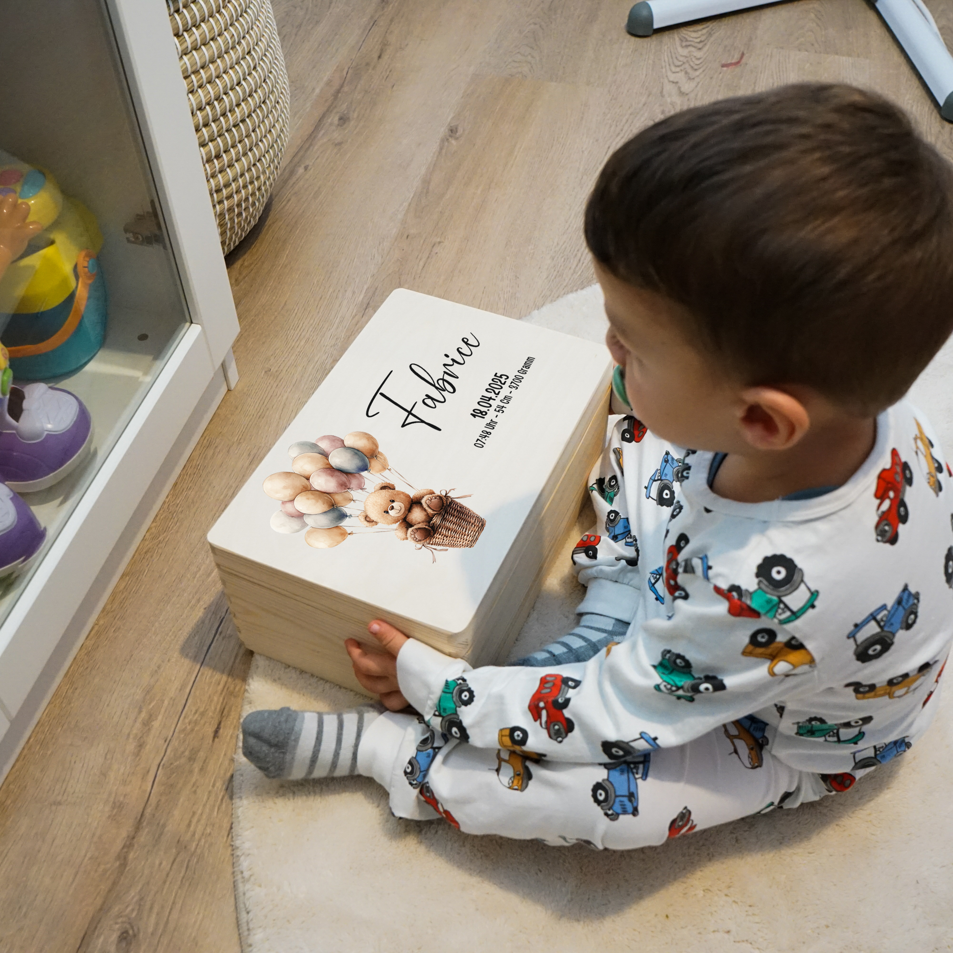 Personalisierte Erinnerungskiste für die schönsten Erinnerungen eines Babys.