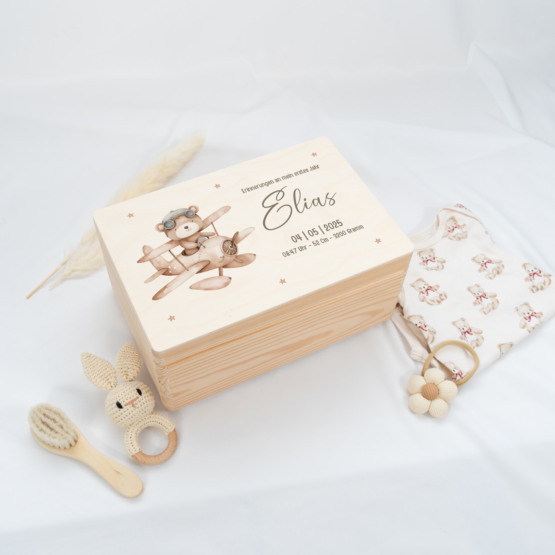 Personalisierte Erinnerungskiste für die schönsten Erinnerungen eines Babys.