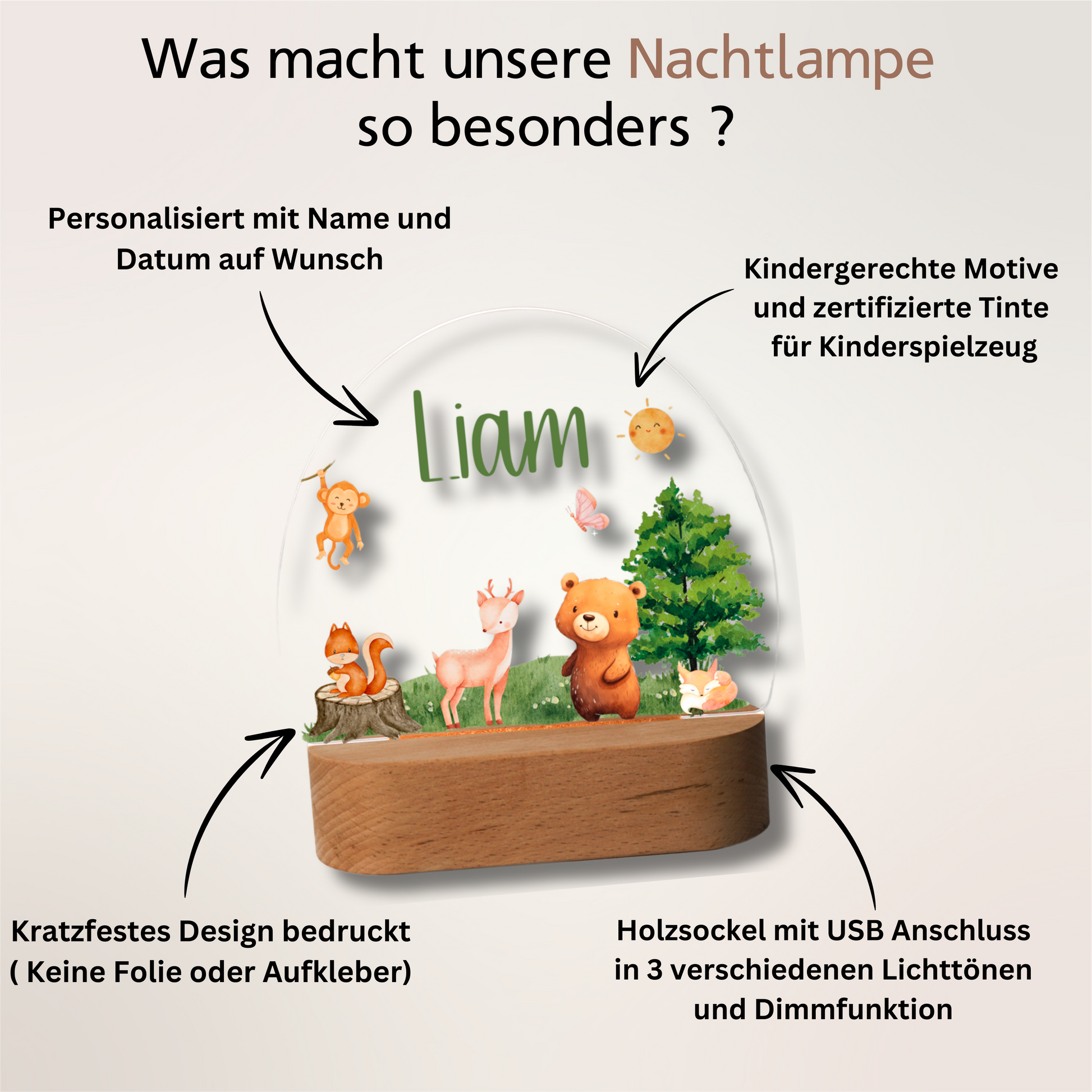 Unsere personalisierte Nachtlampe vereint stilvolles Design mit kindgerechter Funktionalität. Hier sind alle Details, die unsere Nachtlampe zu einem besonderen Highlight machen: