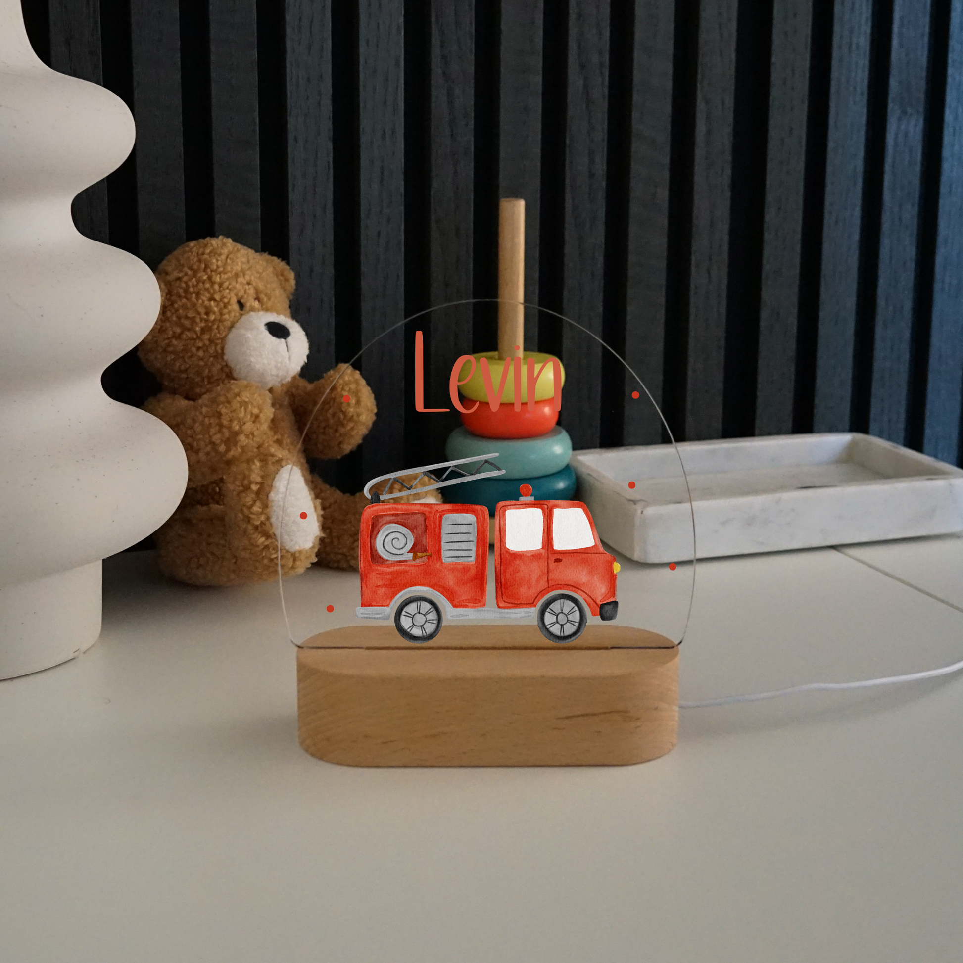 Personalisierte Nachtlampe LED - Feuerwehr Auto