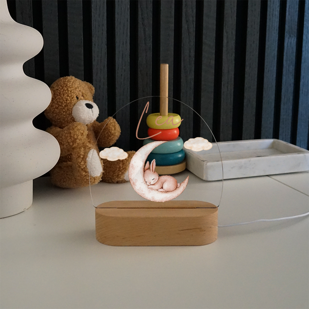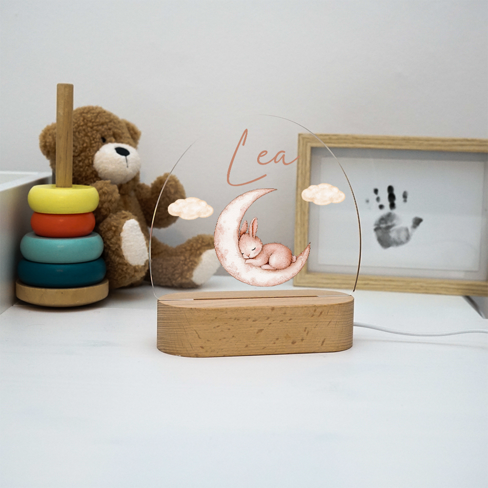 Personalisierte Nachtlampe LED - Schlafender Hase & Halbmond