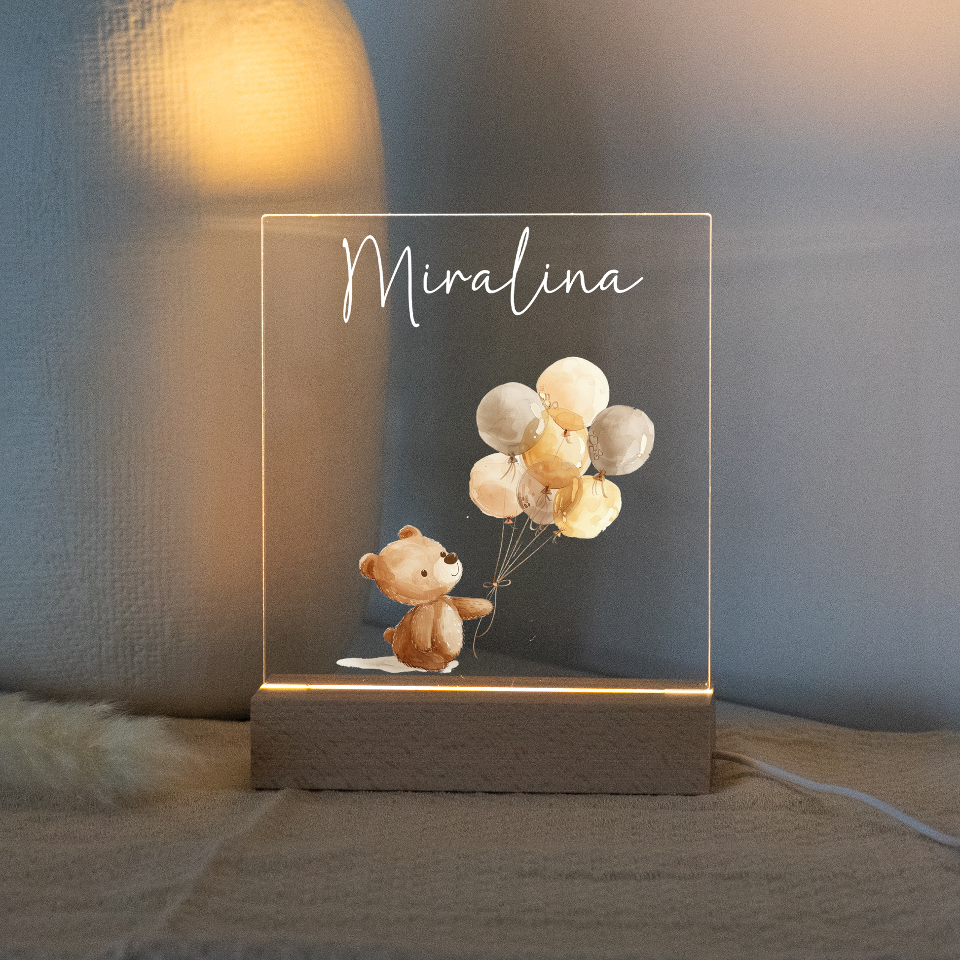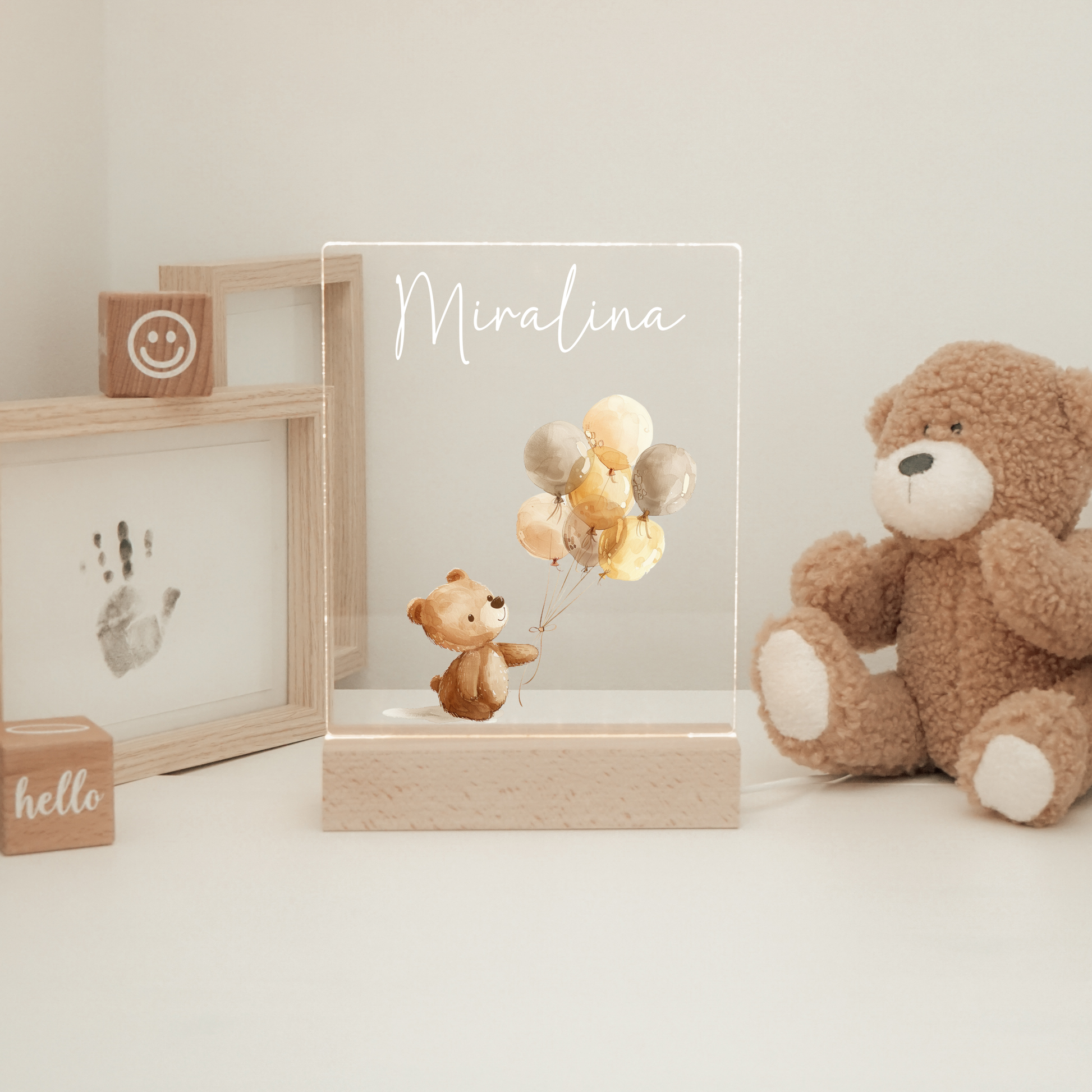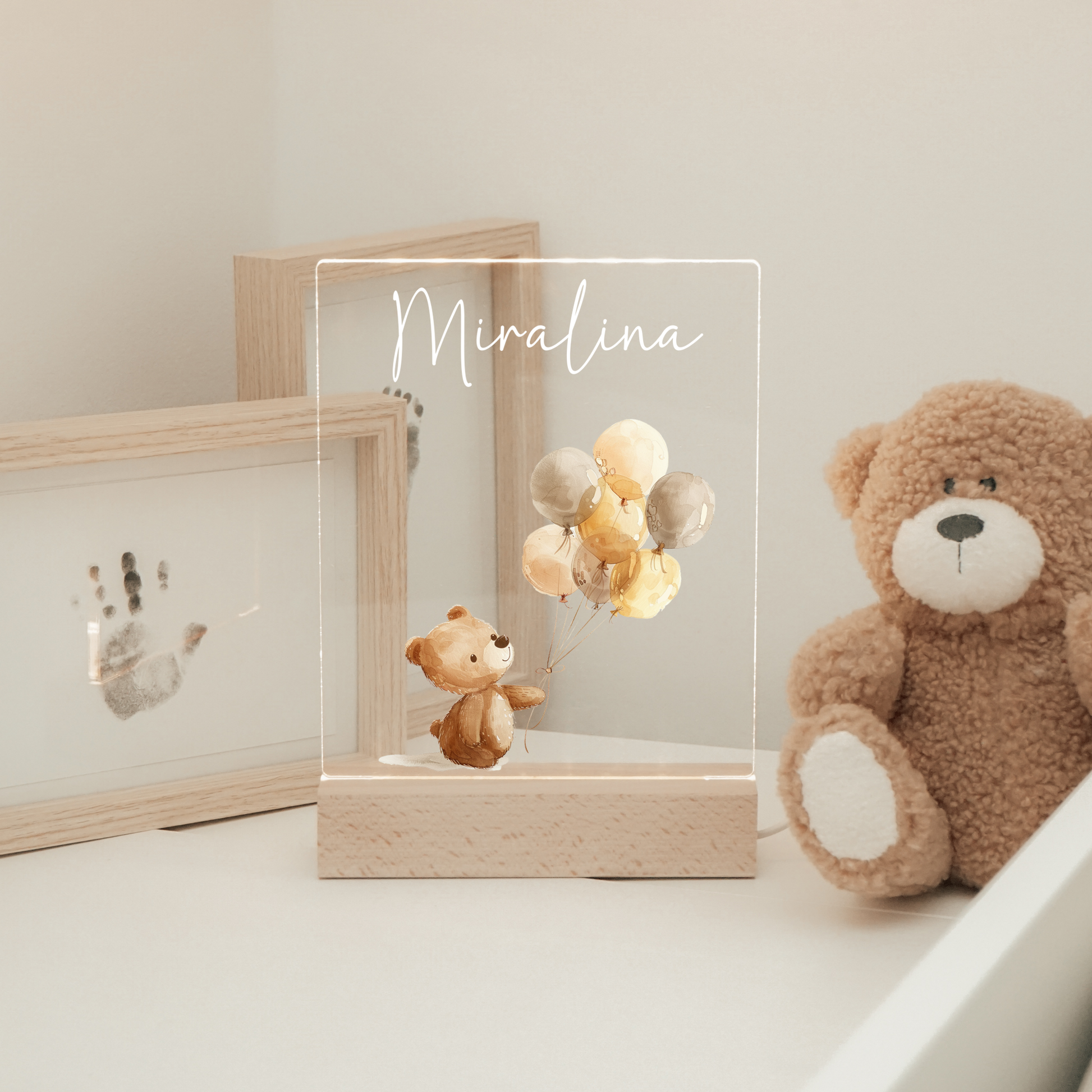 Personalisierte Nachtlampe - Süßer Teddybär & Luftballons