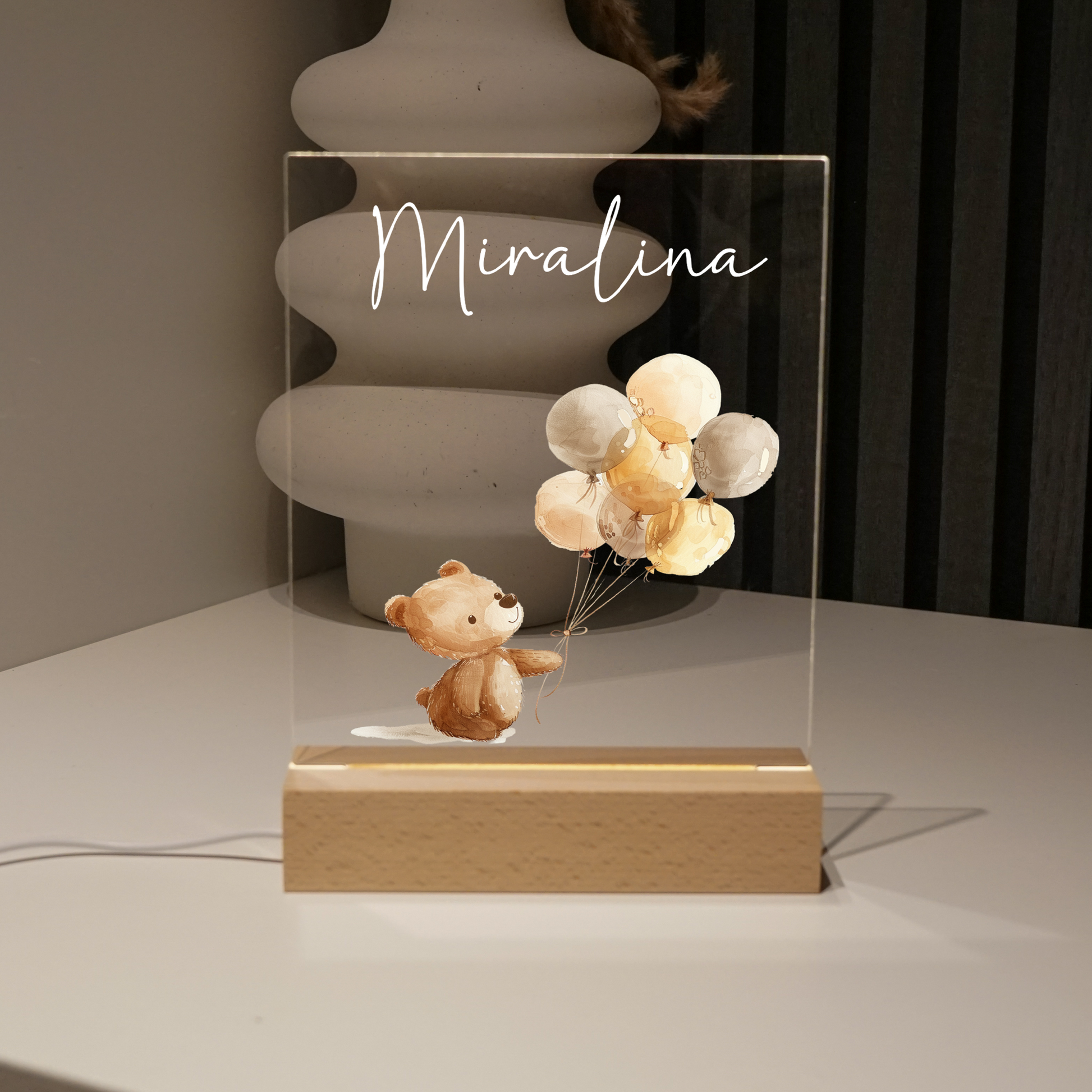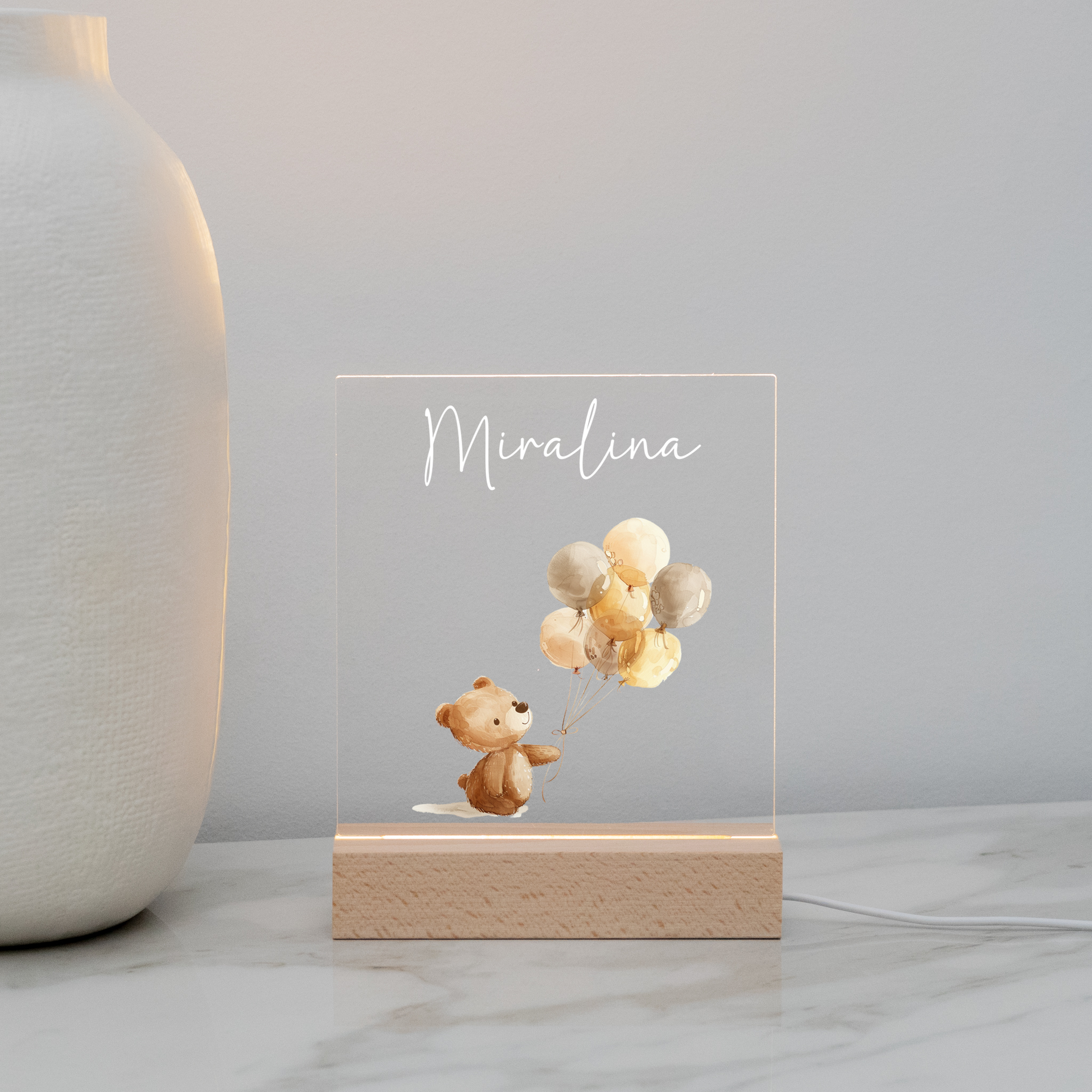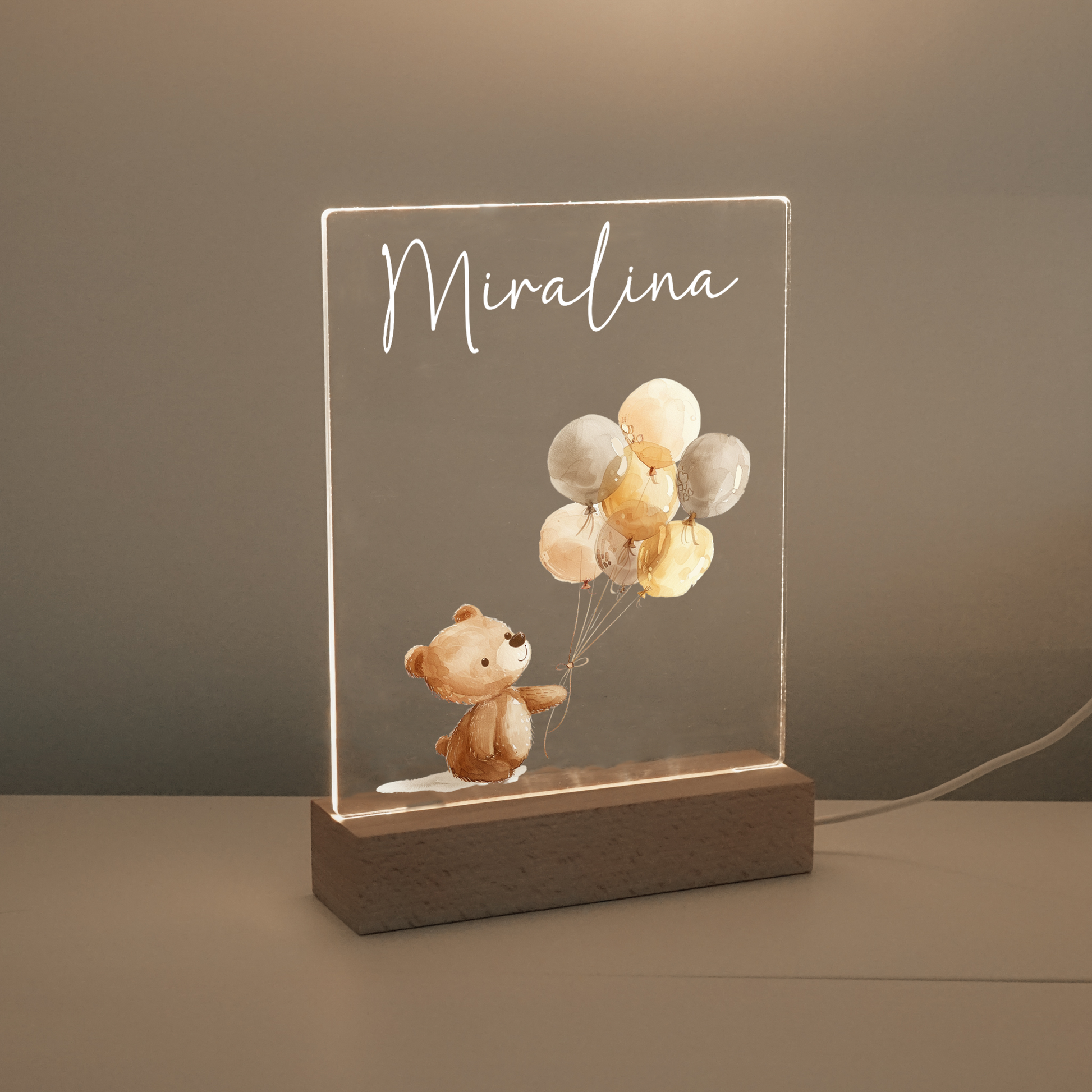 Personalisierte Nachtlampe - Süßer Teddybär & Luftballons