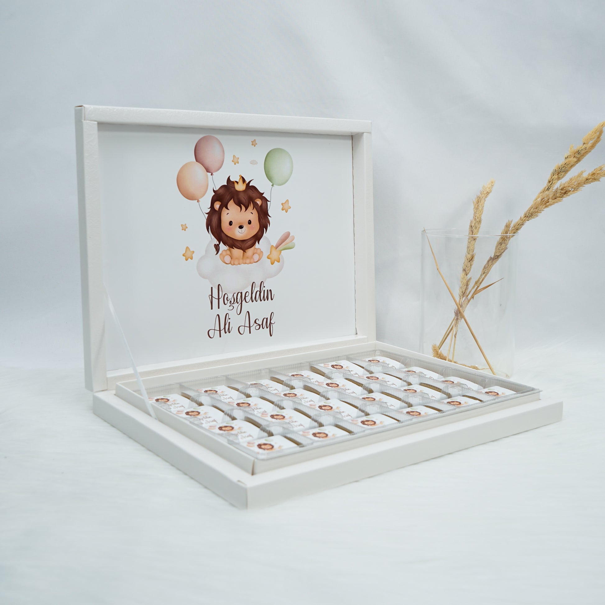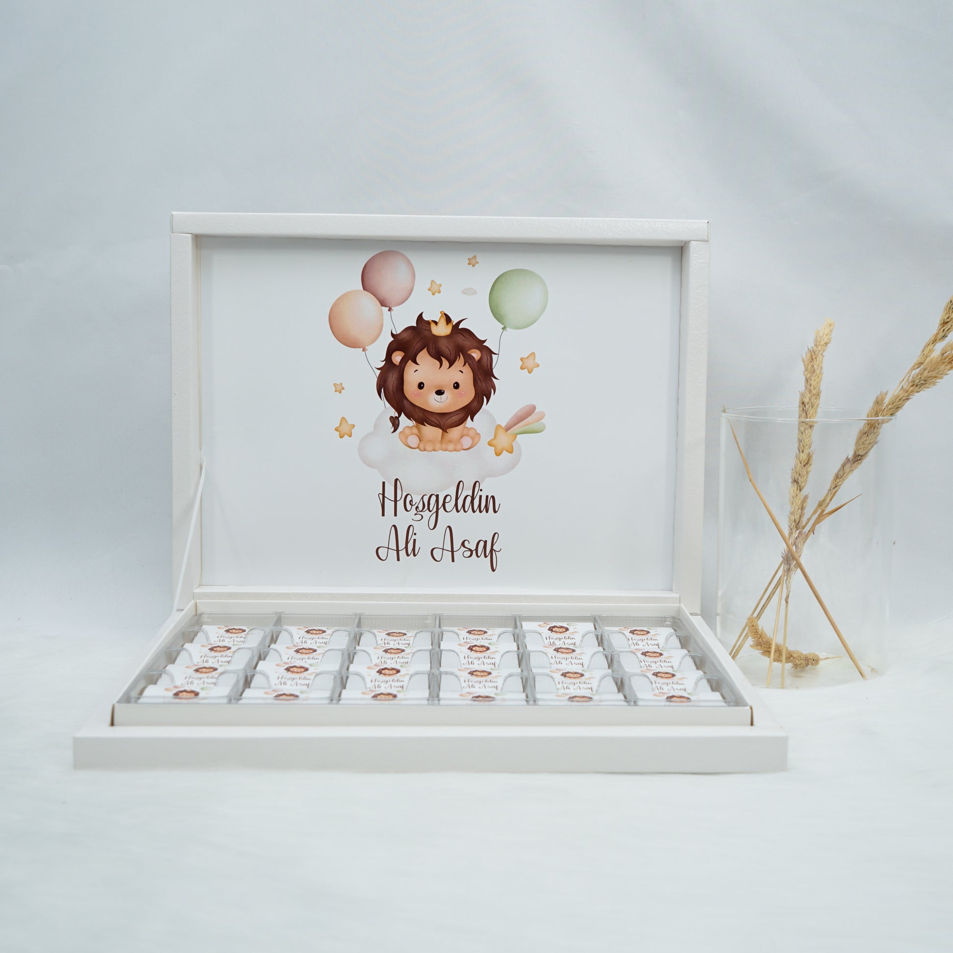 Schokobox Personalisiert - Baby Löwe & Ballons