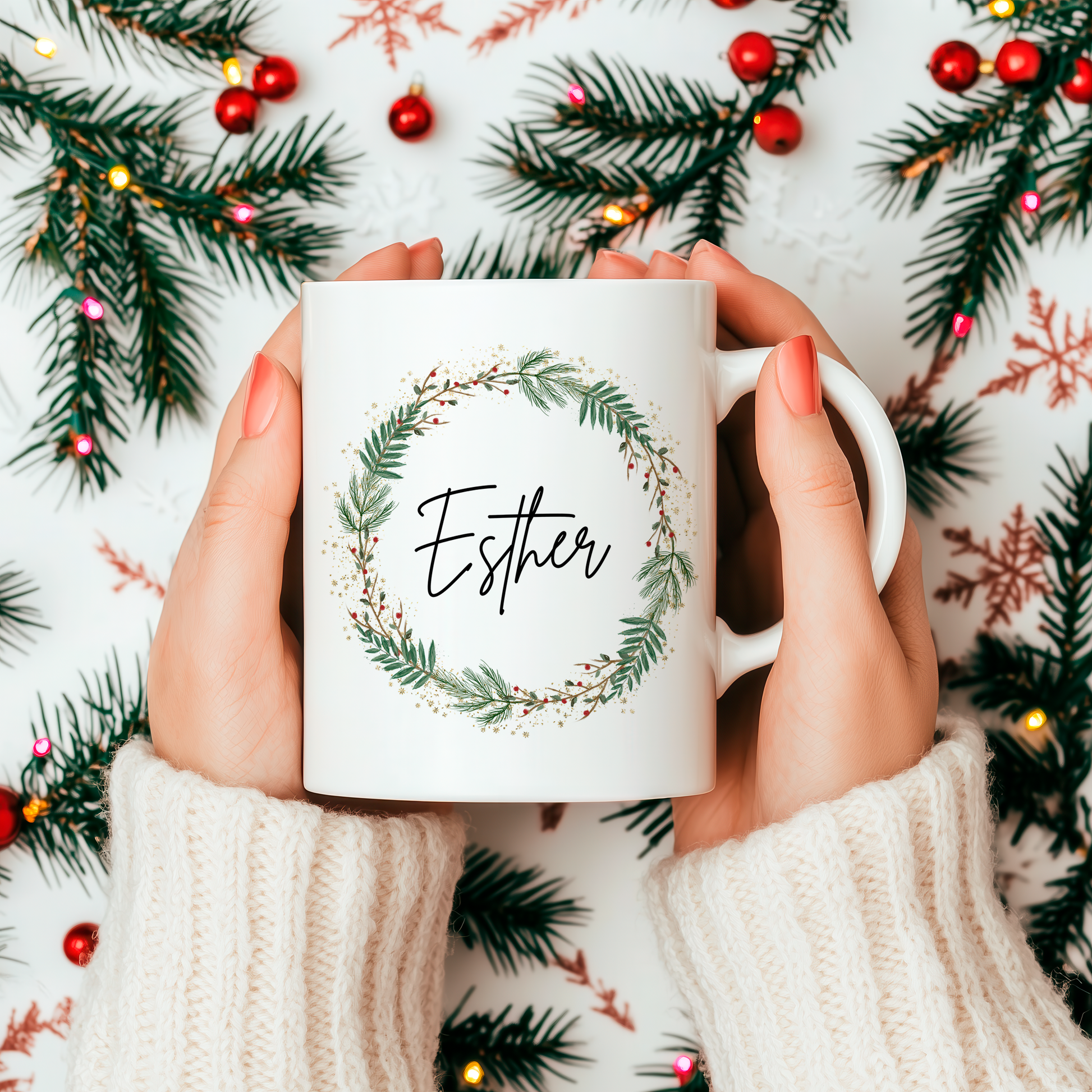 Weihnachtstasse Personalisiert - Weihnachtsgeschenk, Weihnachtskranz