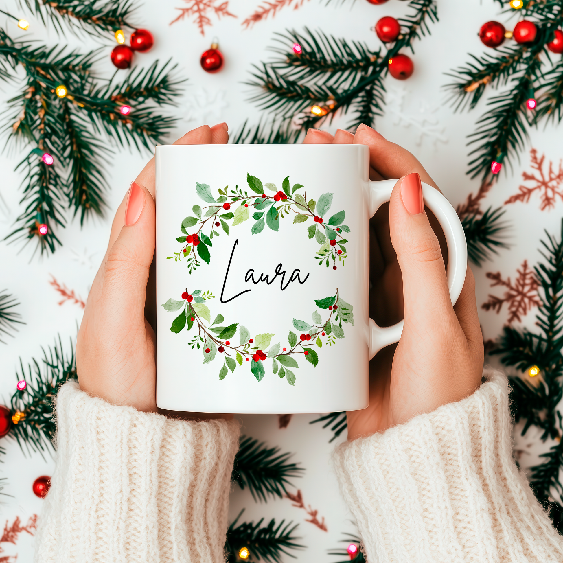 Weihnachtstasse Personalisiert - Weihnachtskranz 2