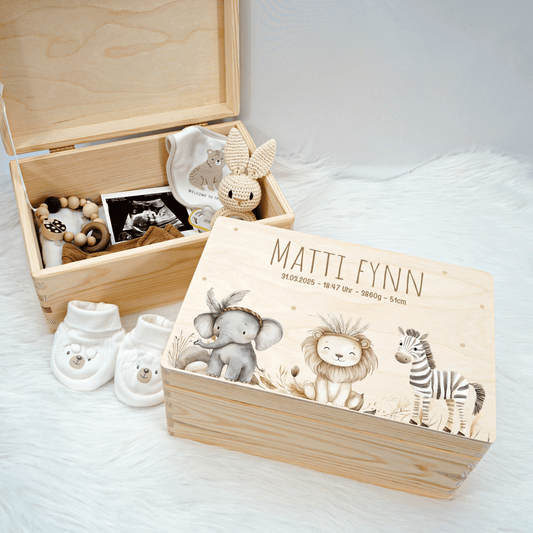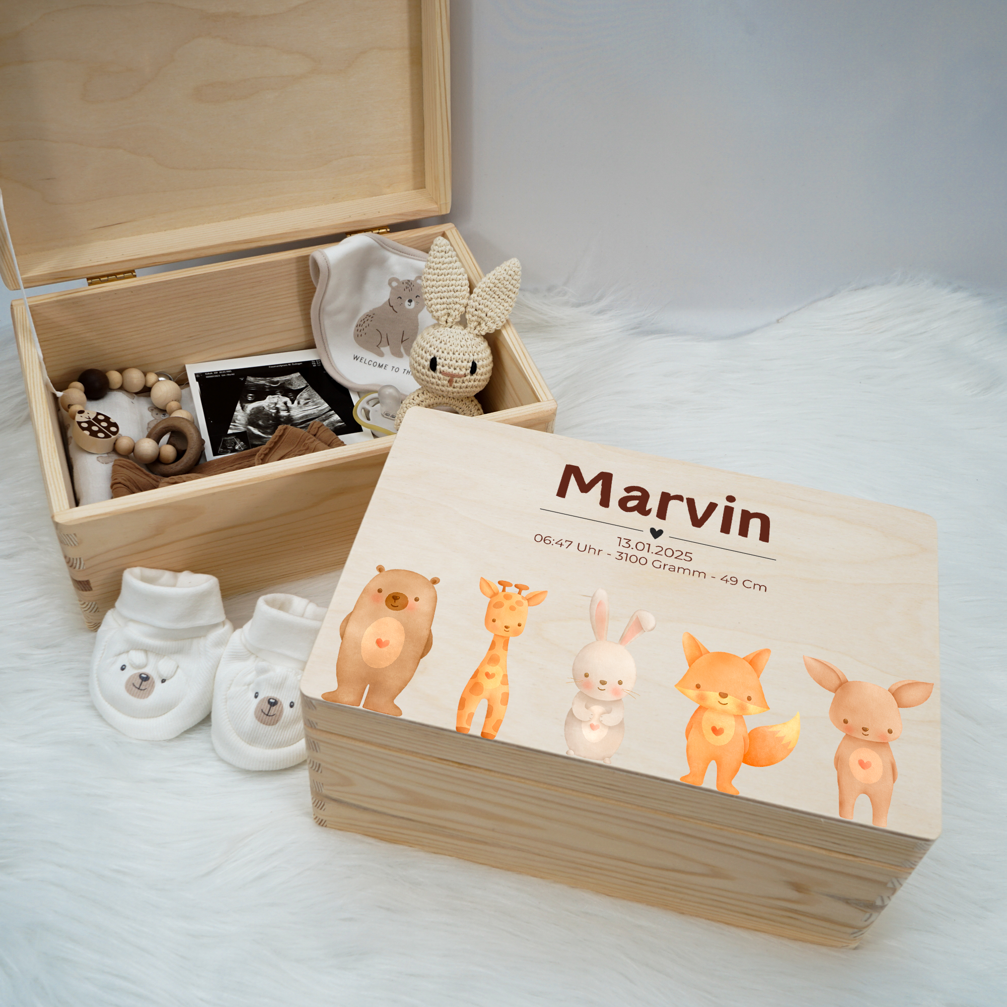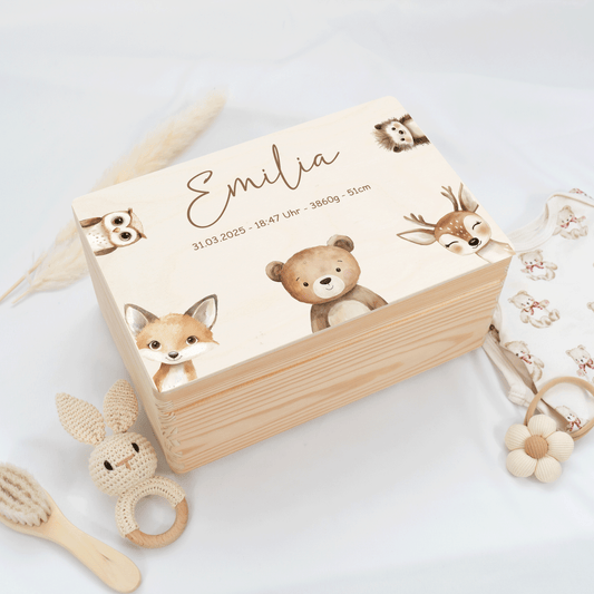 Personalisierte Erinnerungskiste - Safari Freunde im Wald