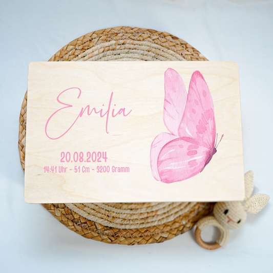 Personalisierte Erinnerungskiste - Rosa Schmetterling